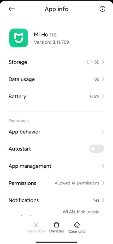 3. Clear the data of the Mi Home App (it will clear your downloaded cloud storage videos);