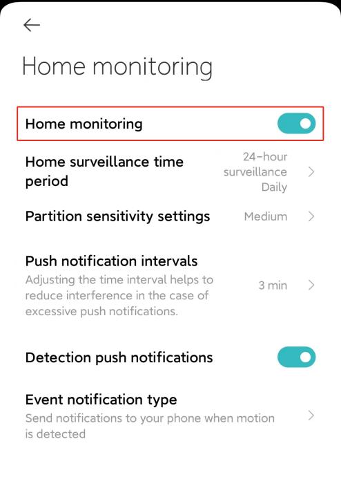 2. Go to Mi Home >> Tap [...] at the upper right corner >> select [Home Surveillance Settings] >> Tap [Partition Sensitivity settings] >> Select [High].
