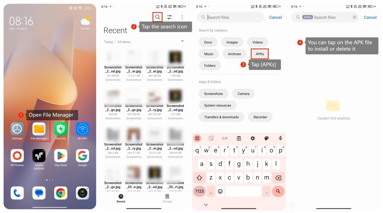 3. Tap [APKs] to search for the APK files, which usually have the ".apk" file extension;