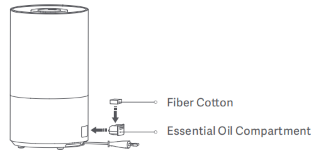 5. Put an appropriate amount of essential oil (sold separately) onto the fiber cotton. Then place the cotton in the crucial oil compartment and reinstall the compartment.