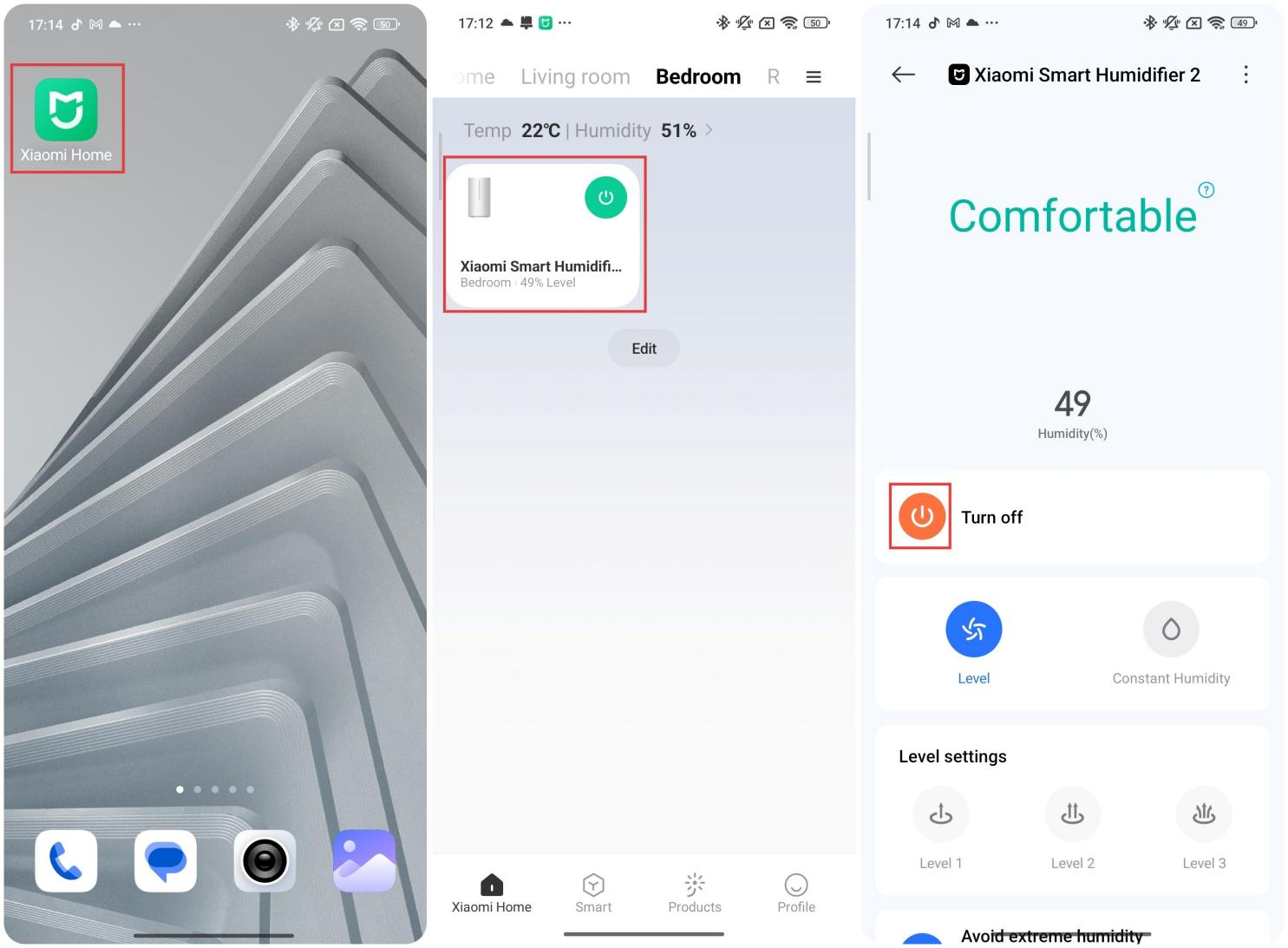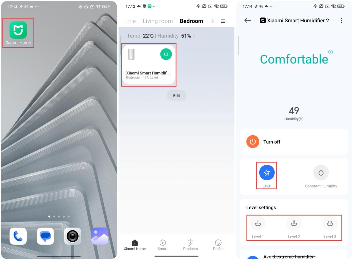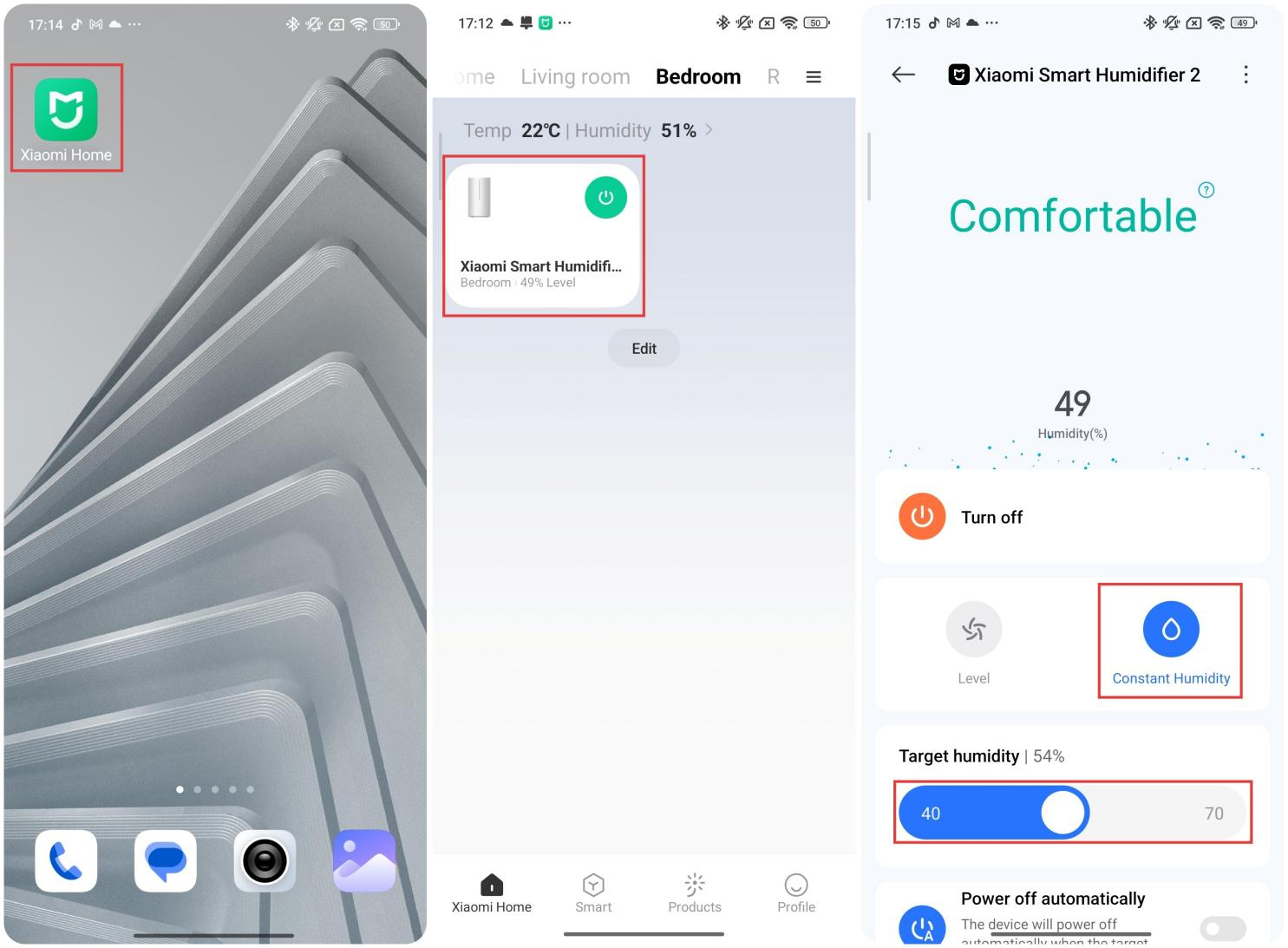 4. Through the Xiaomi Home App, you can remotely control the device and manage humidity levels with a single tap.