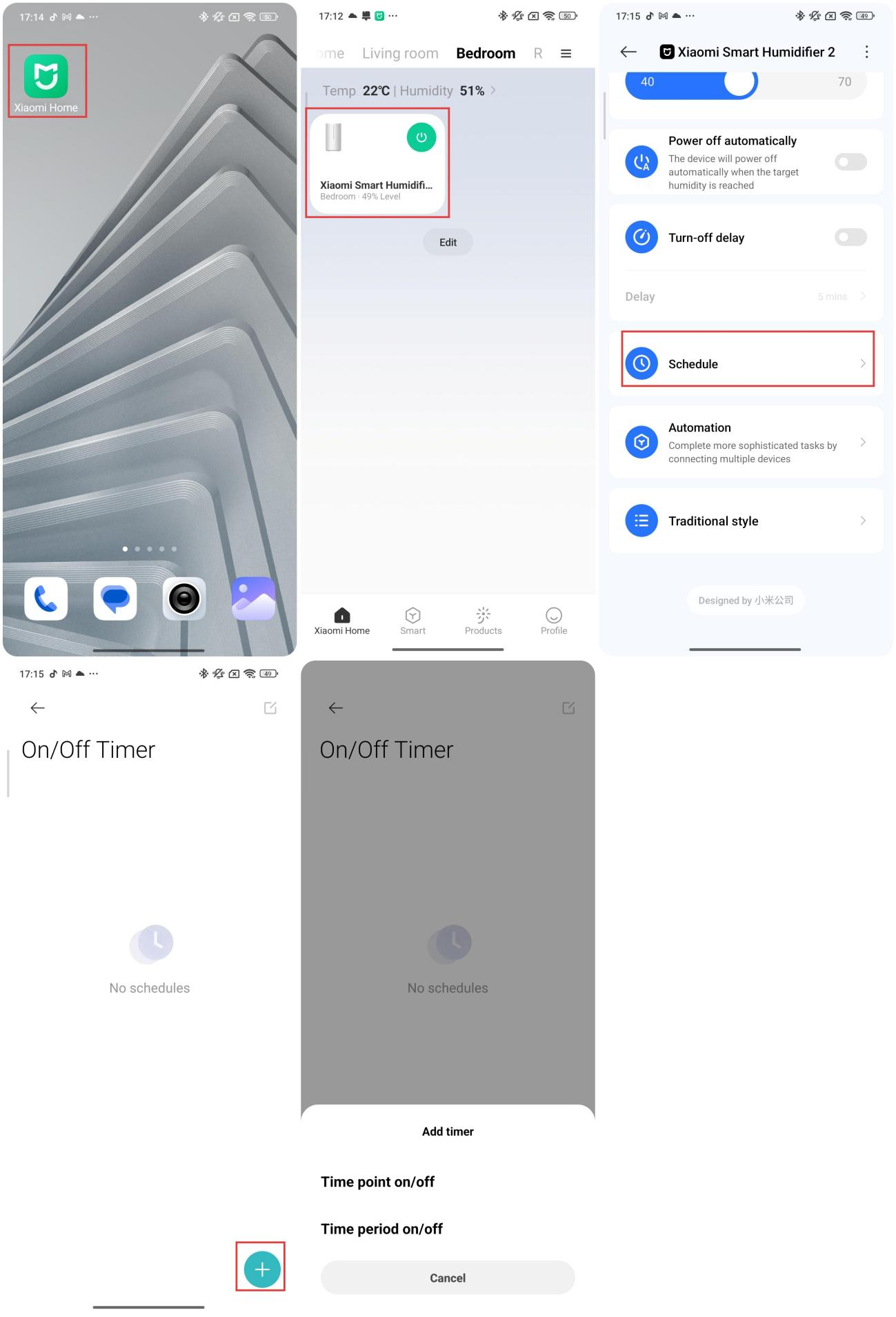 Q5: How to set the On/Off Timer of the Xiaomi Smart Humidifier 2?