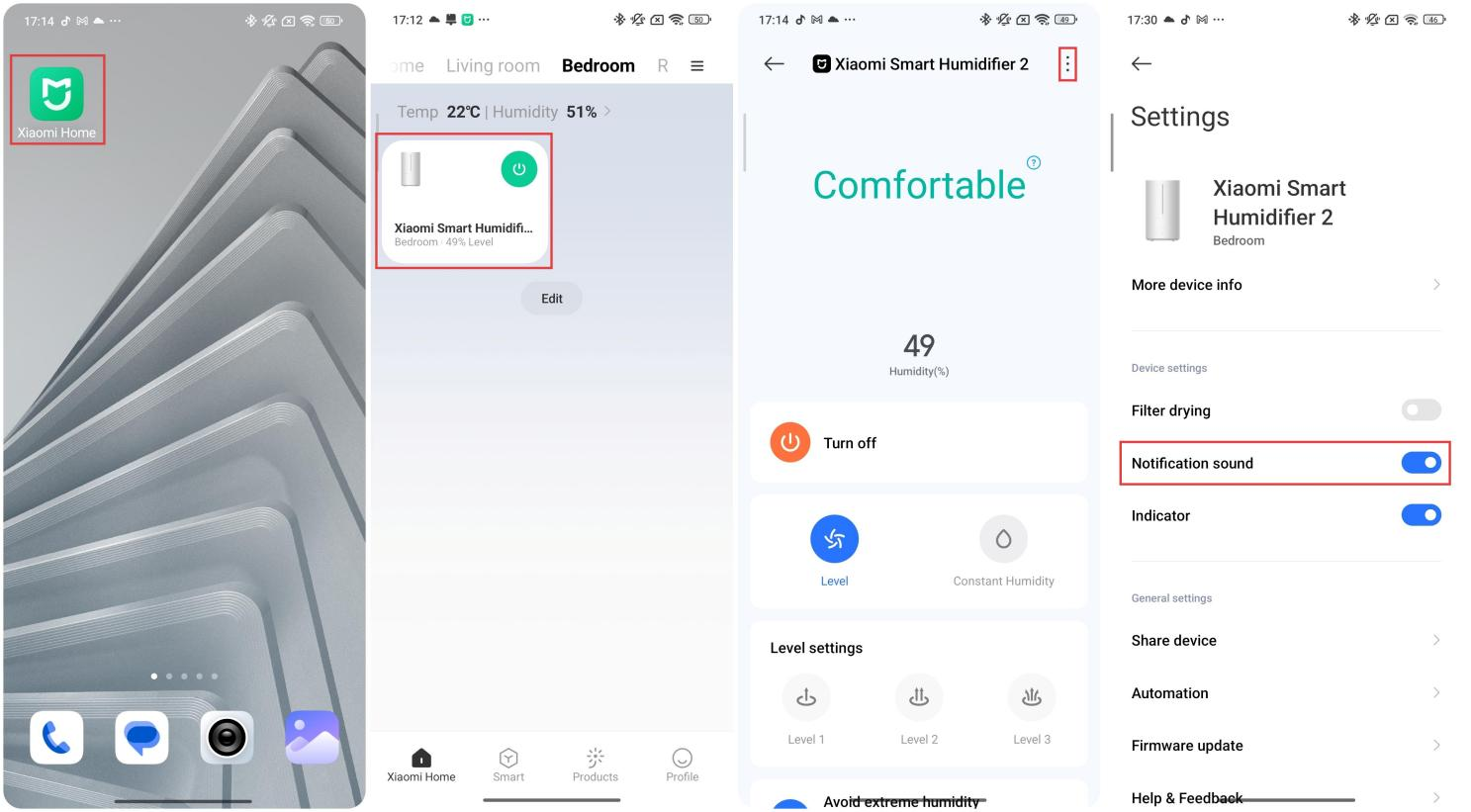 To enable/disable the Notification sound of the Xiaomi Smart Humidifier 2, please refer to the following steps: