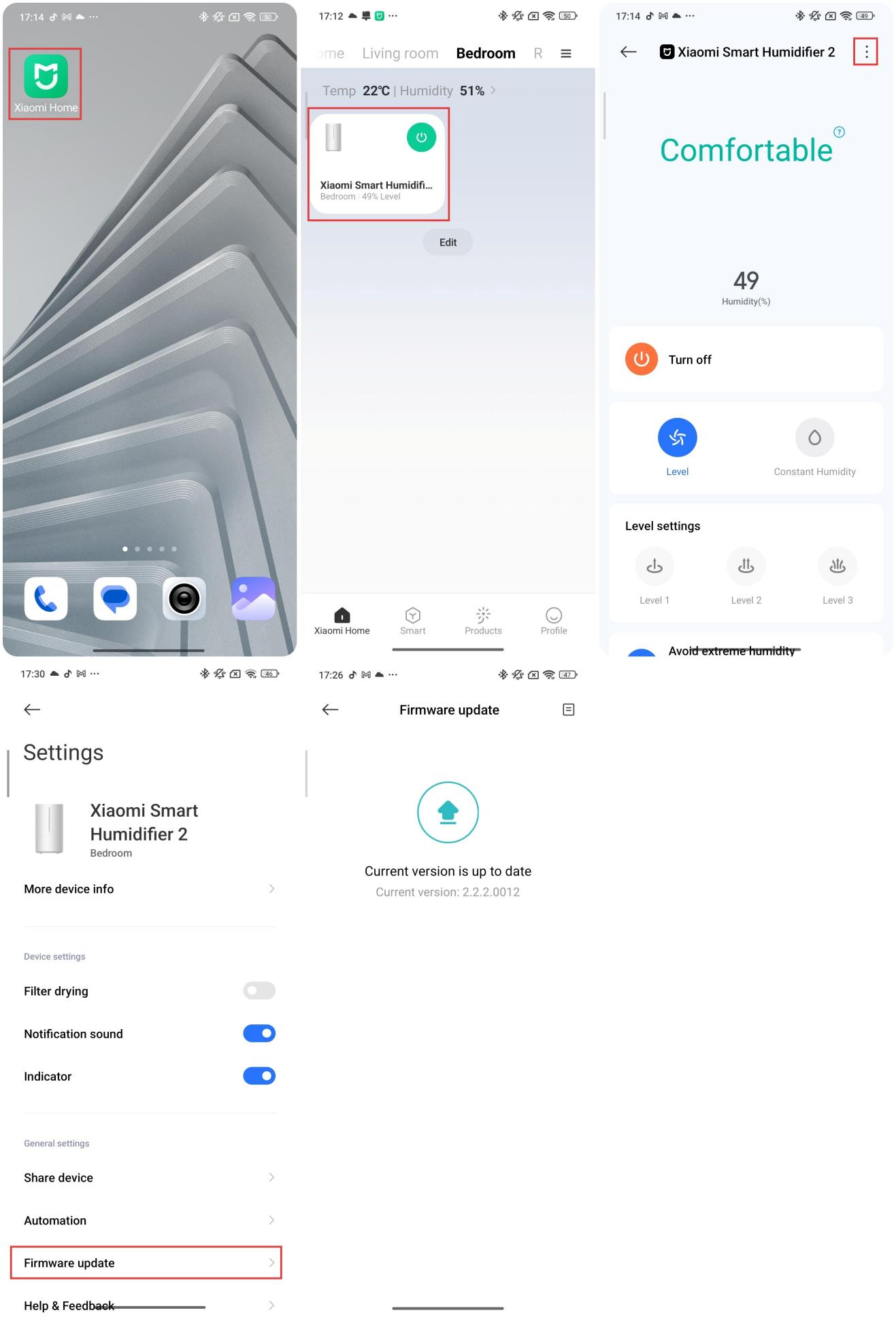 A: To update the firmware of the Xiaomi Smart Humidifier 2, please refer to the following steps:
