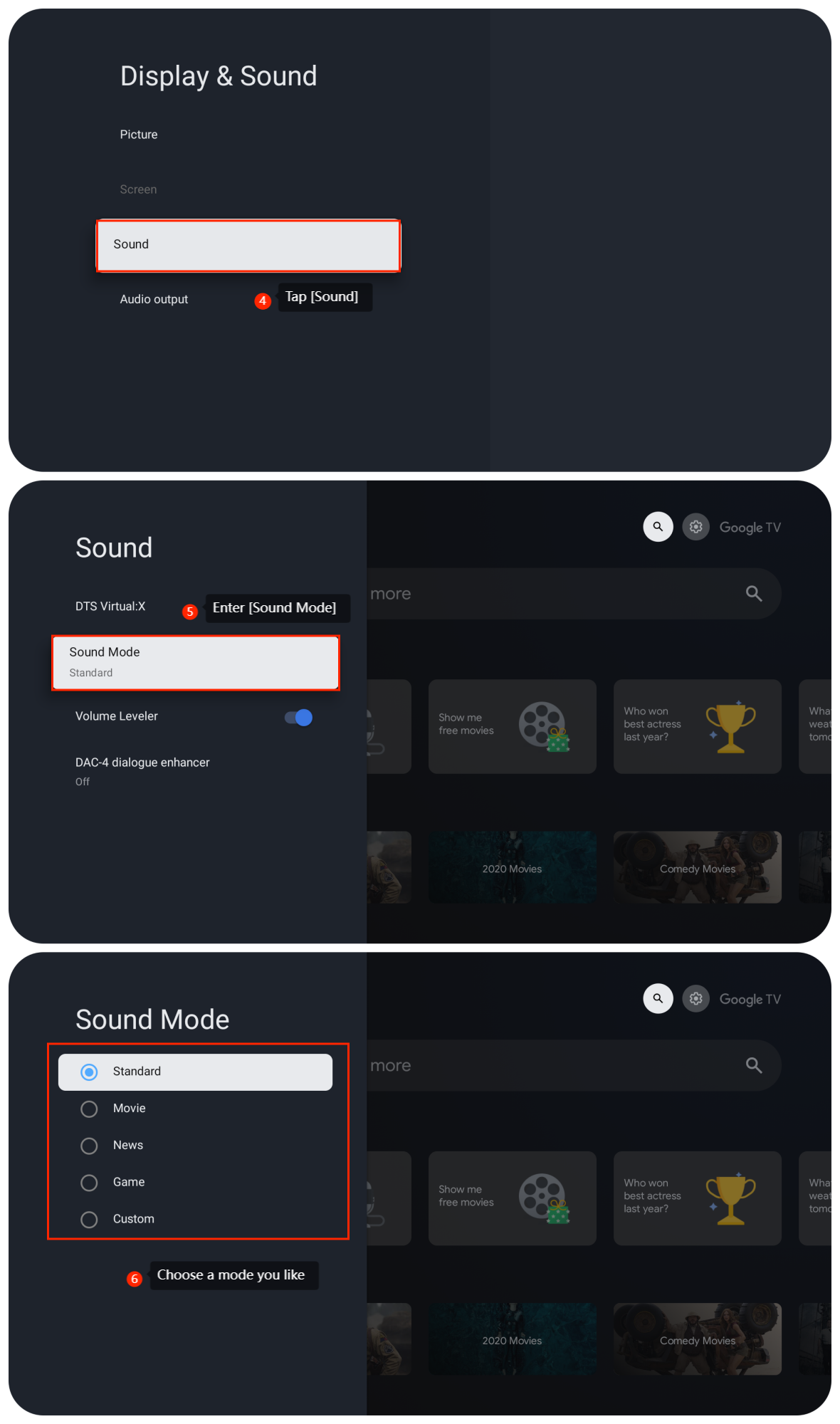 2. Optimized for watching movies, the Movie mode can emphasize dialogue clarity and create a more immersive cinematic experience;