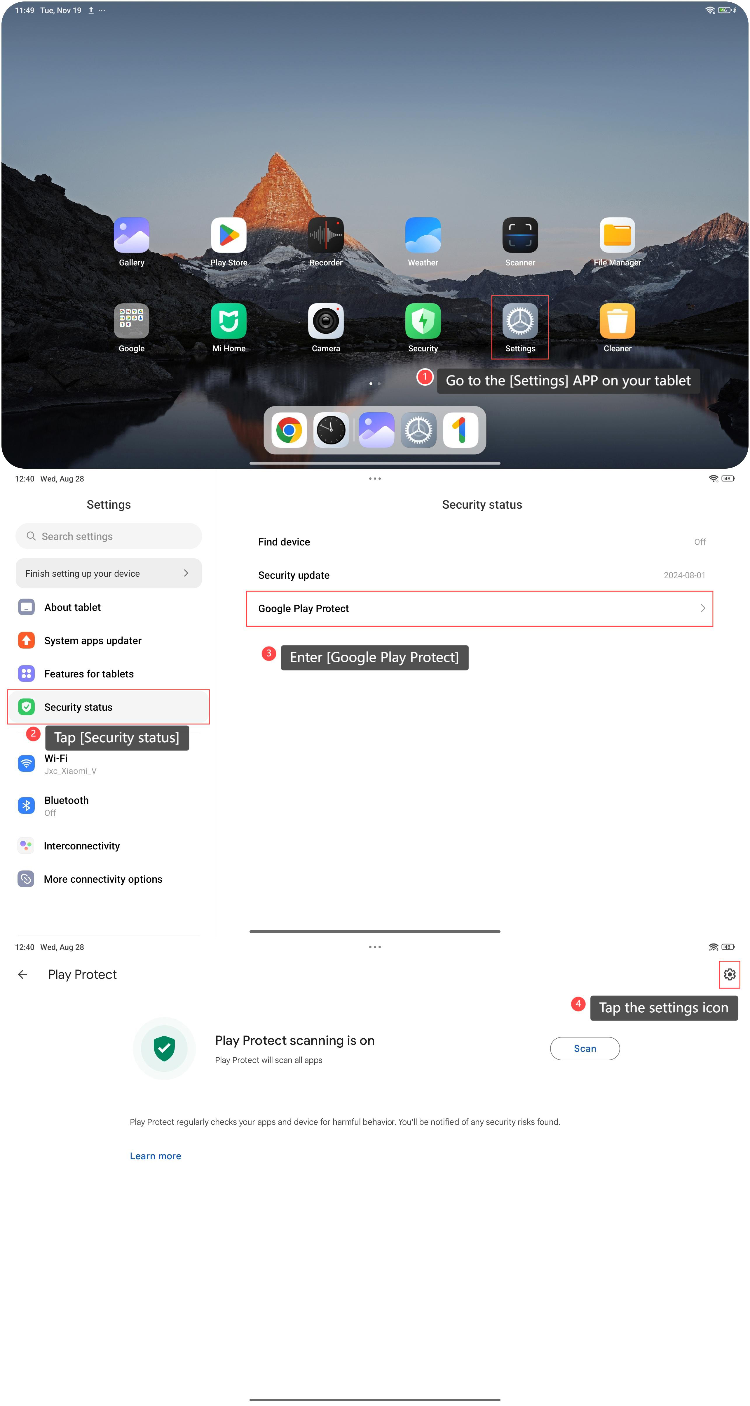 To scan APPs with Play Protect on your tablet, please refer to the following steps: