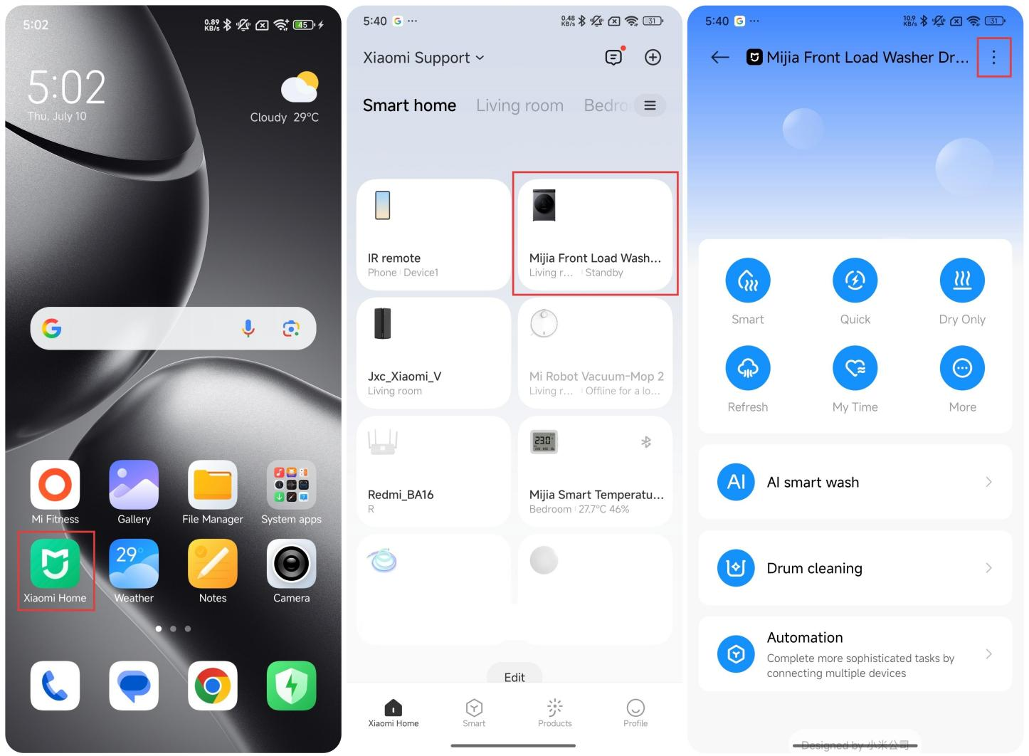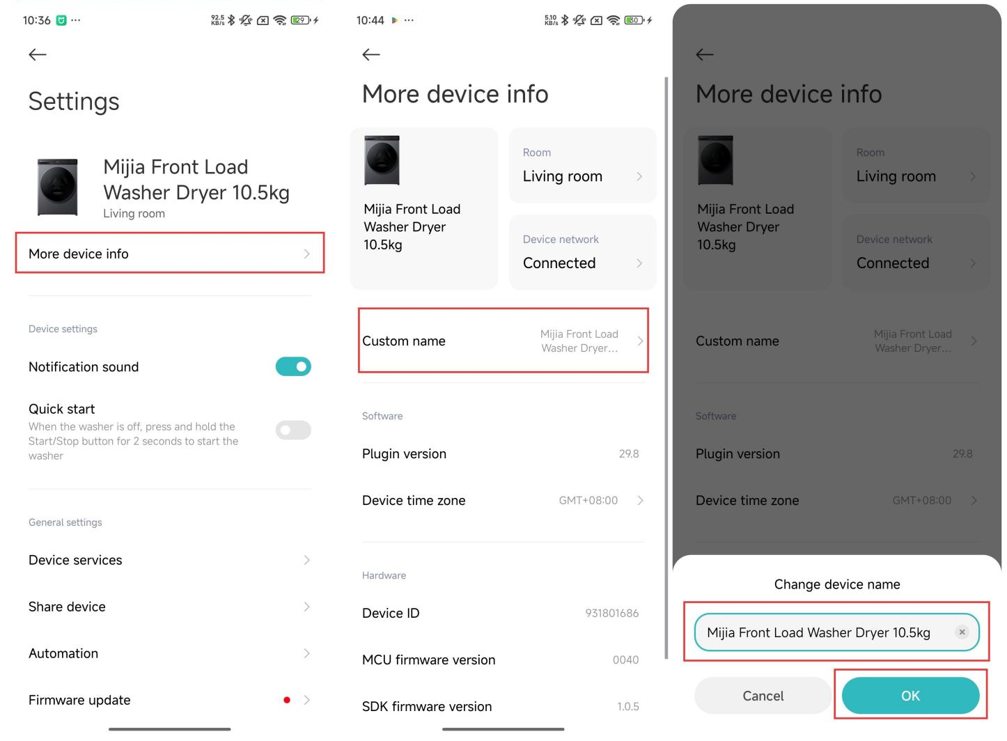 The Mijia Front Load Washer Dryer 10.5kg allows you to modify the device name, which lets you personalize the washing machine’s name in the Mi Home/Xiaomi Home APP. It also helps you conveniently manage your smart-home appliance and easily find the washing machine.