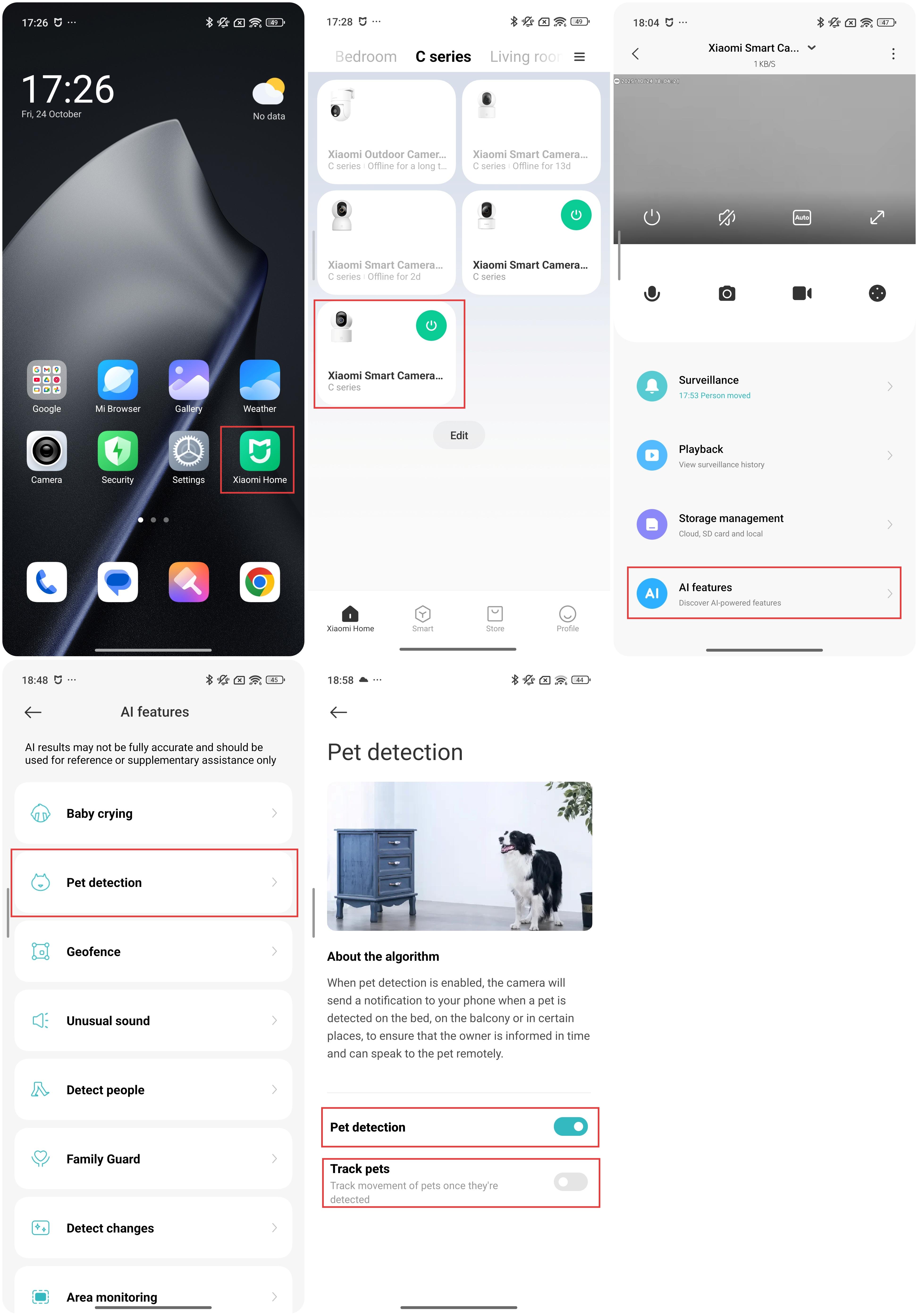 If the Xiaomi Smart Camera C302 keeps rotating on its own, please check if the human tracking and pet tracking features are enabled.