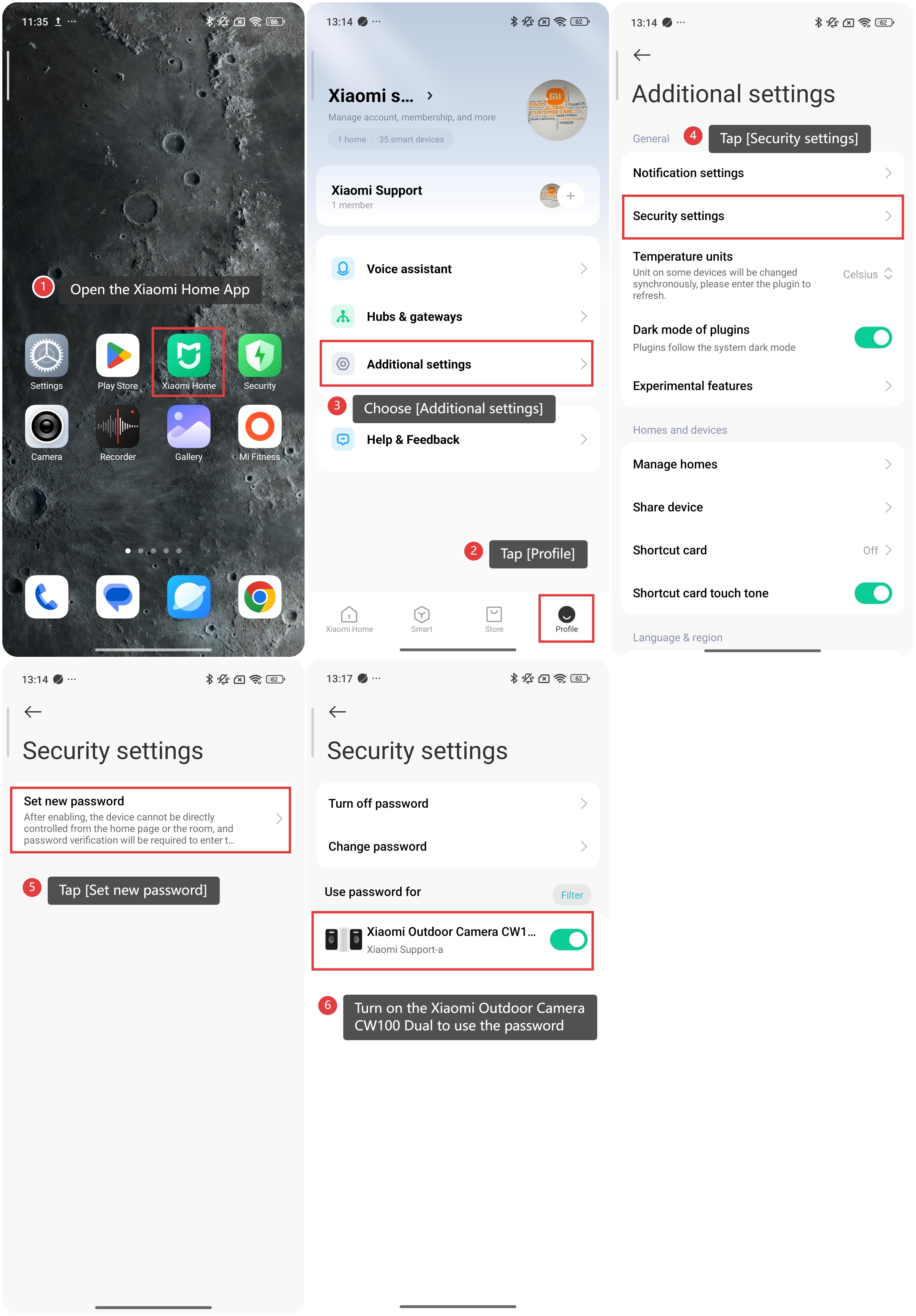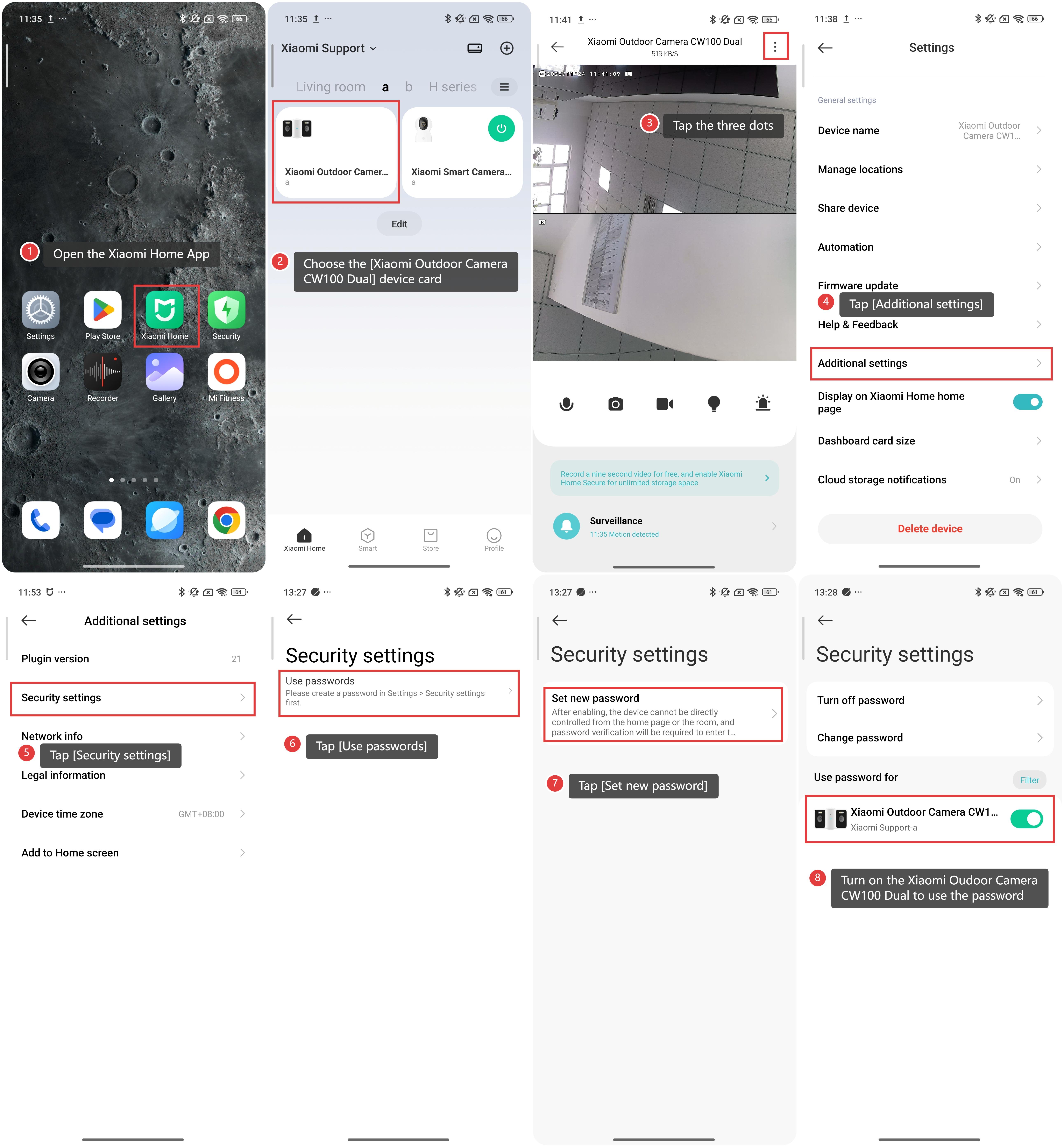 To set the password for the Xiaomi Outdoor Camera CW100 Dual, please refer to the following methods: