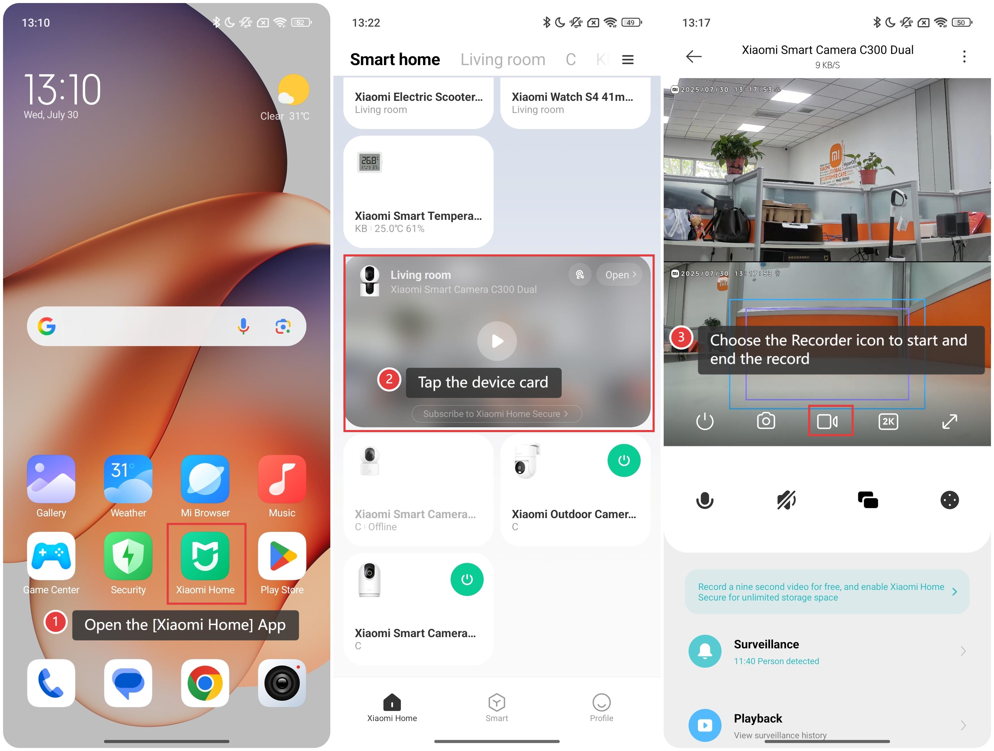 The Xiaomi Smart Camera C300 Dual can record and store videos of the real-time surveillance, allowing you to easily capture important moments from your live camera feed with just a few taps.