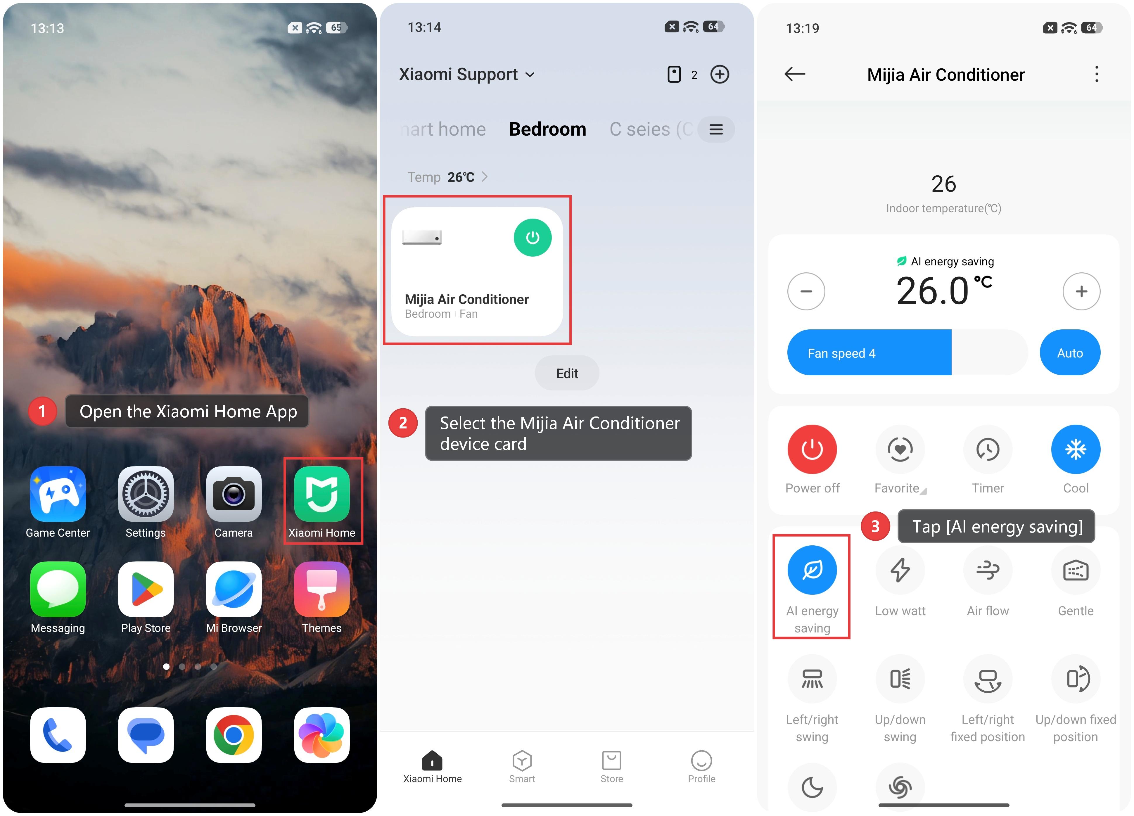 To enable AI energy saving of the Mijia Air Conditioner in the Xiaomi Home App, please refer to the following steps: