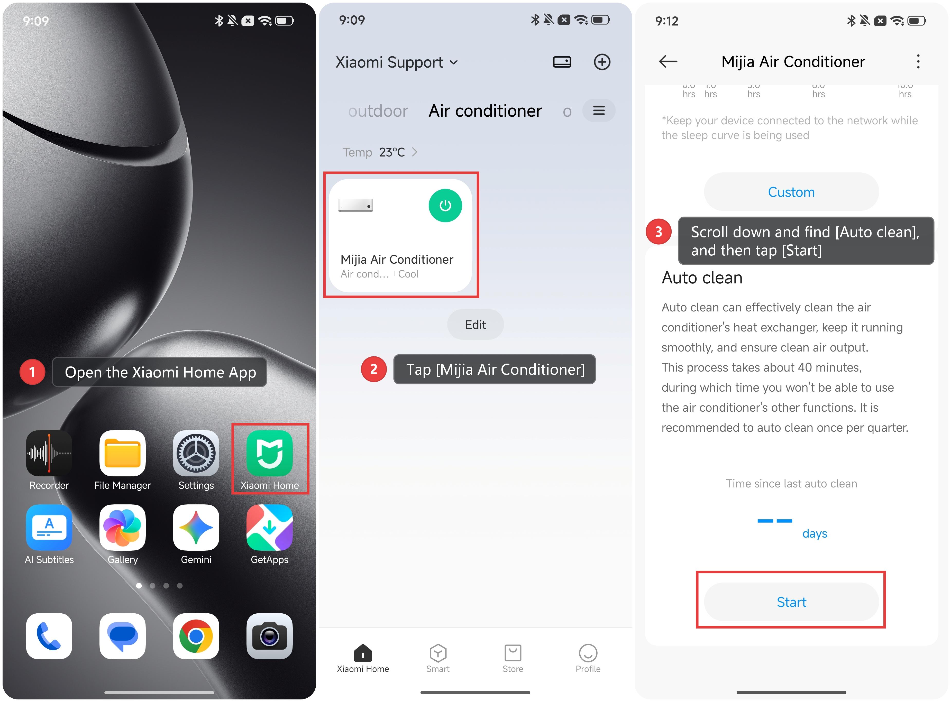 To run a self-cleaning program for the Mijia Air Conditioner, please refer to the following methods: