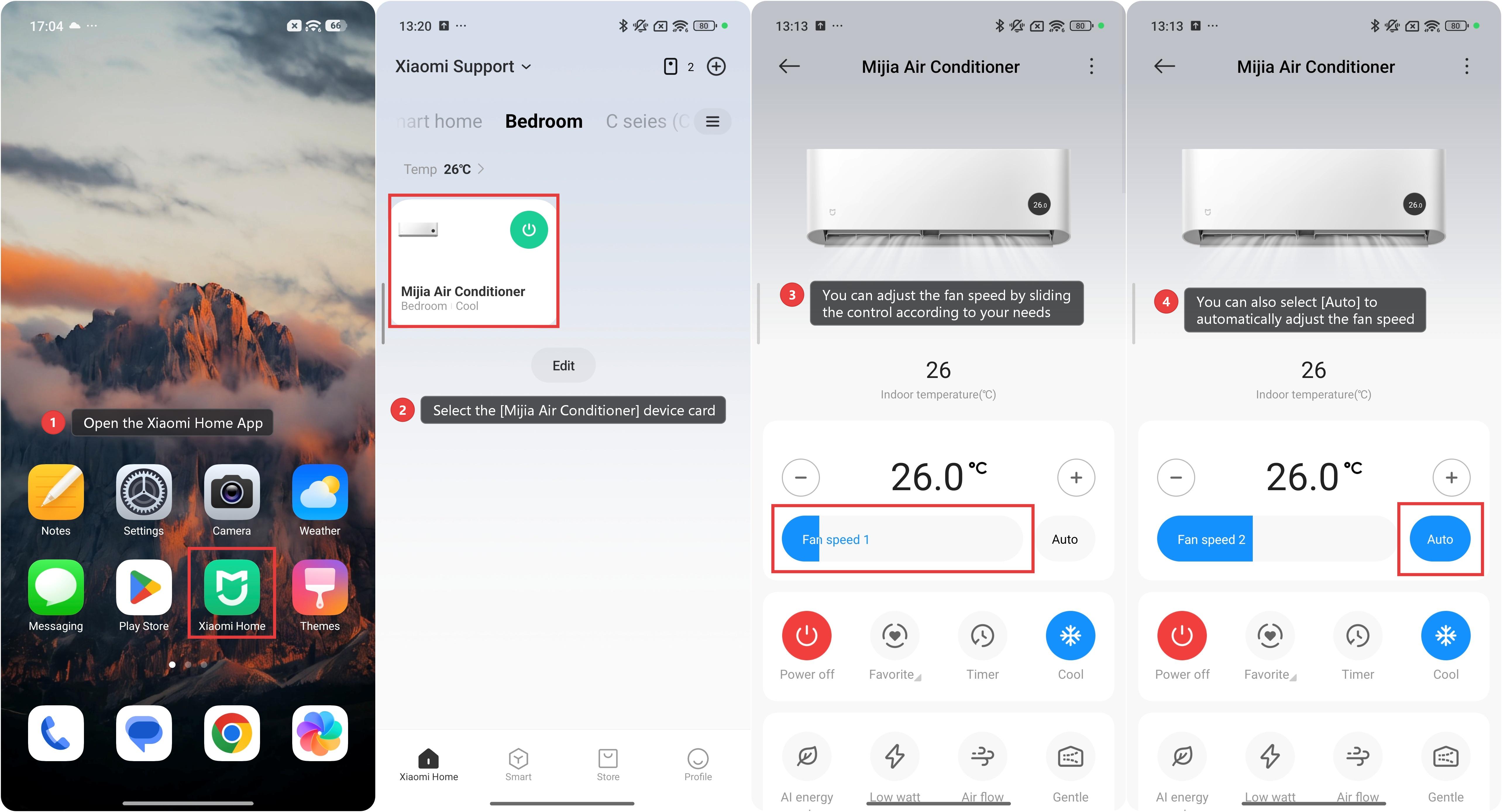 To adjust the Fan speed of the Mijia Air Conditioner, please refer to the following methods: