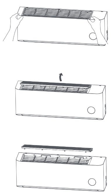 1. Removing the filter: As shown in the figure, open the clips at both ends and the middle of the filter, and pull upward to remove the filter.