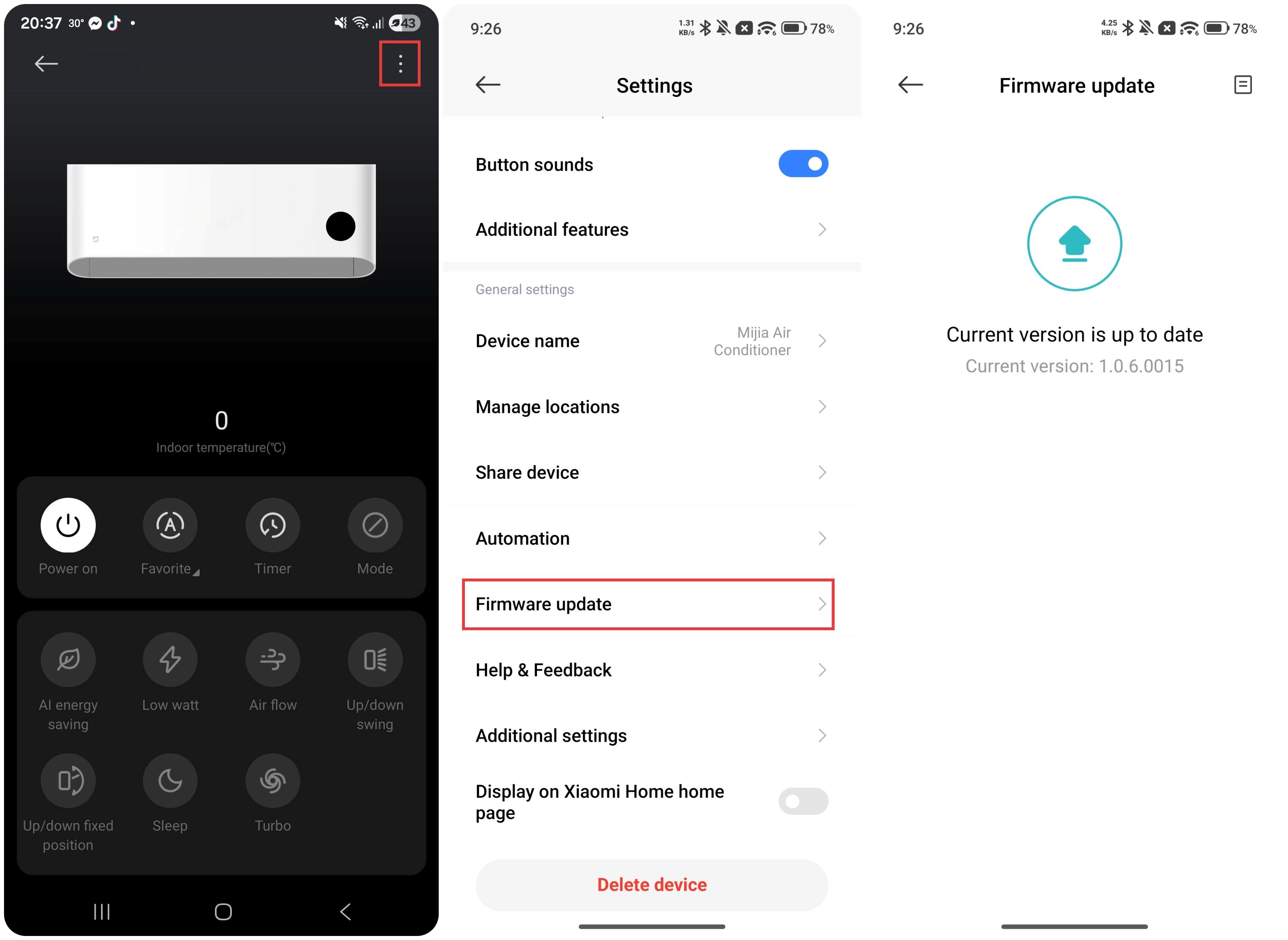 Q11: Does the Mijia Air Conditioner Eco EGAT Label No.5 with 1 Star 9000BTU support firmware upgrades?