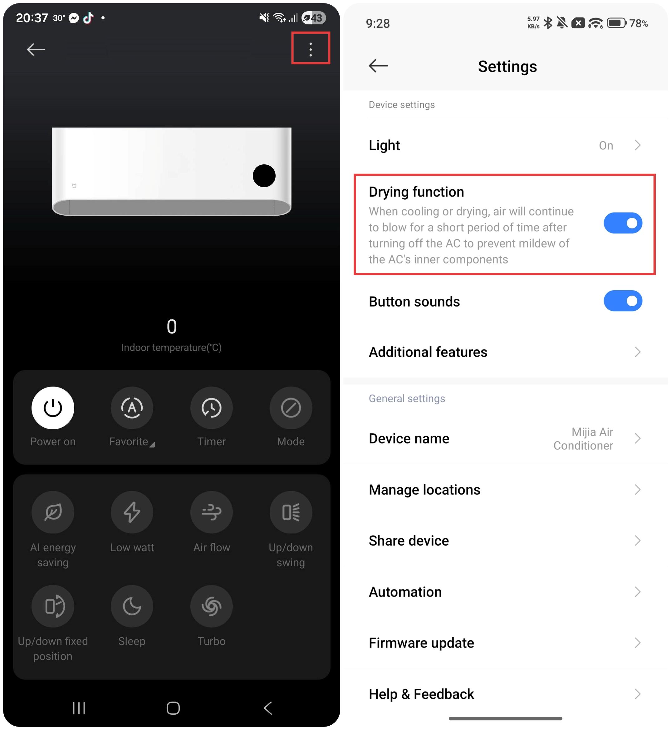 A: You can use the Mijia Air Conditioner Eco EGAT Label No.5 with 1 Star 9000BTU’s Auto clean function by following the steps below:
