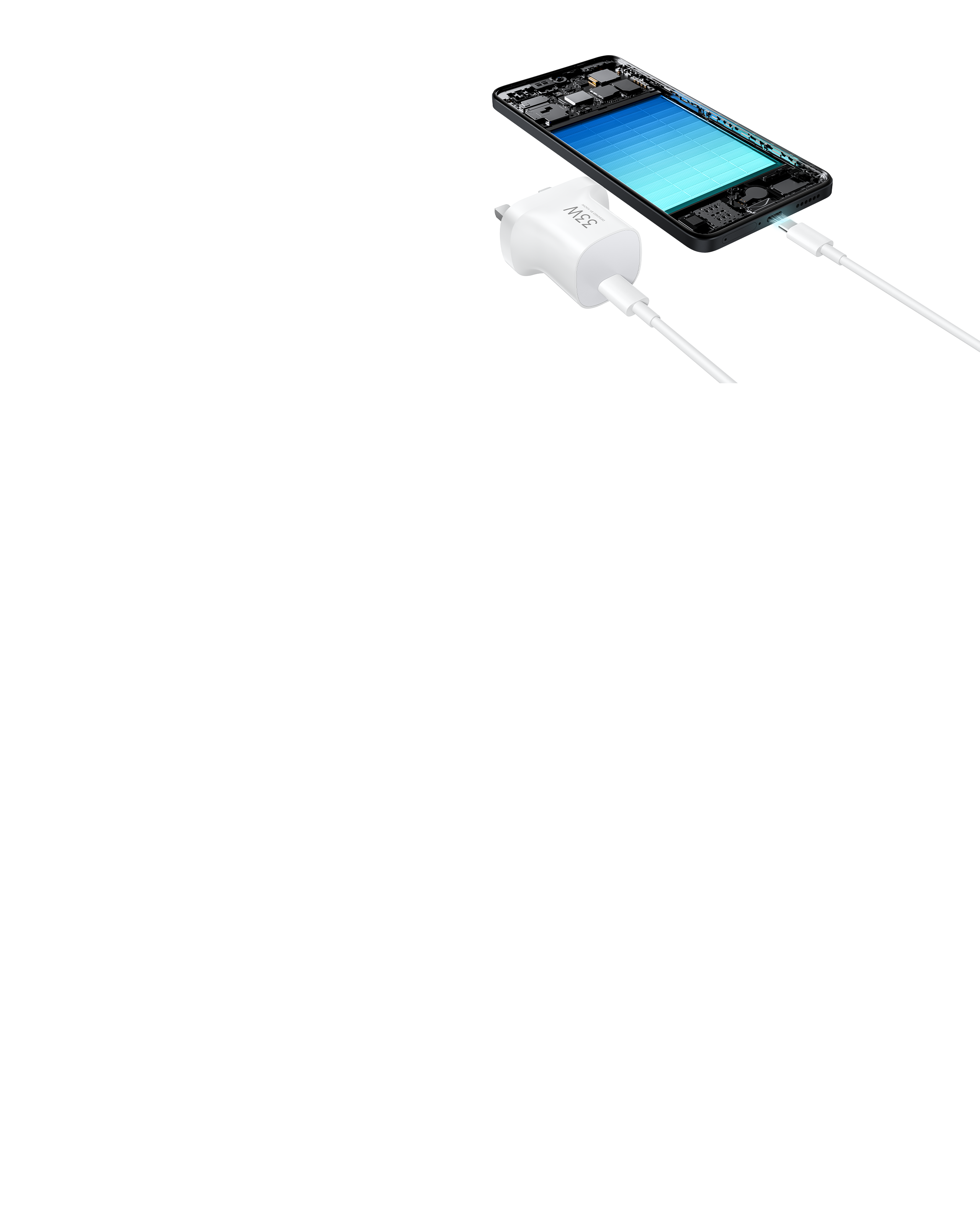 Με κομψό, απαλό φινίρισμα, ο προσαρμογέας ρεύματος προσφέρει κορυφαία αίσθηση στα χέρια σας. Μικρού μεγέθους και ελαφρύ, έχει διαστάσεις μόλις 42,17 cm³, οπότε είναι 50% μικρότερος από τους τυπικούς φορτιστές 33 W.*