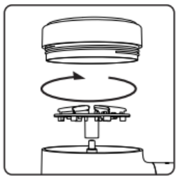 8. Μετά τον καθαρισμό, τοποθετήστε ξανά το συγκρότημα λεπίδας, το κάλυμμα λεπίδας και τον συλλέκτη χνούδι με τη σωστή σειρά για να επαναφέρετε τη συσκευή στην κατάσταση χρήσης της.