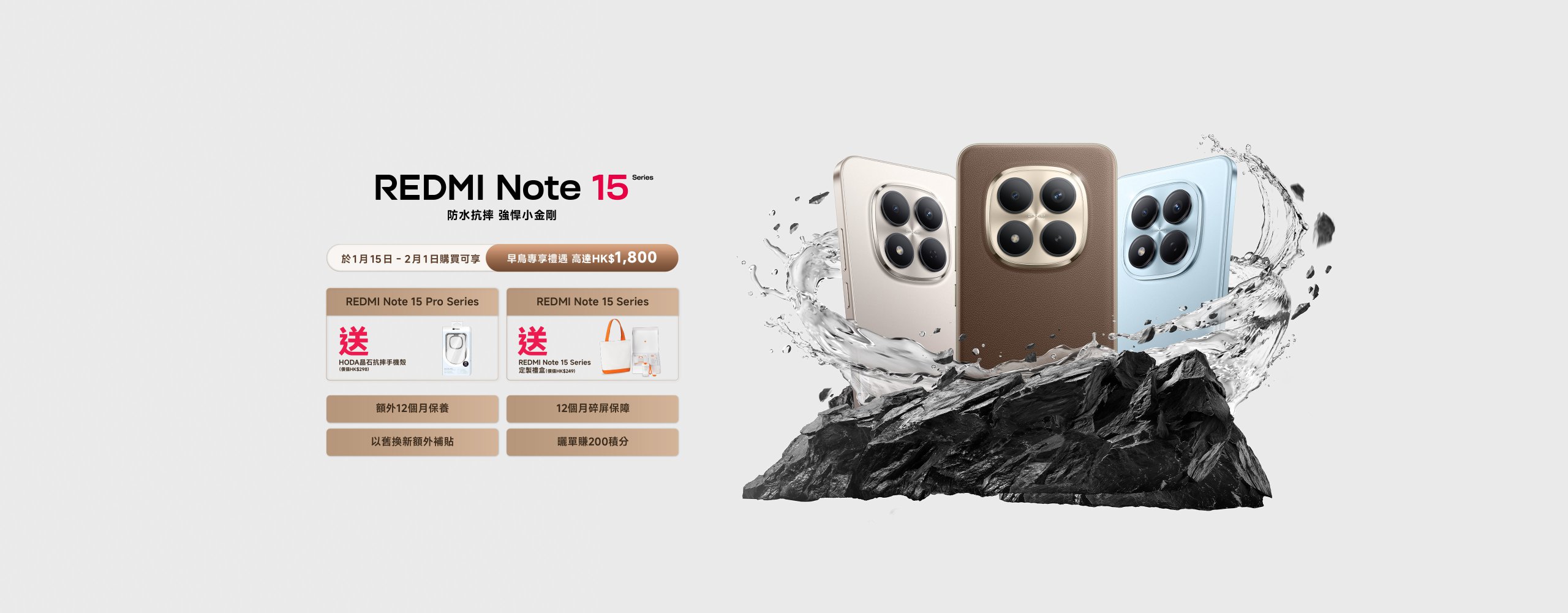 早鳥期買機送 HODA 晶石抗摔手機殼(價值HK$298)及以下權益,合計禮遇高達HK$2250