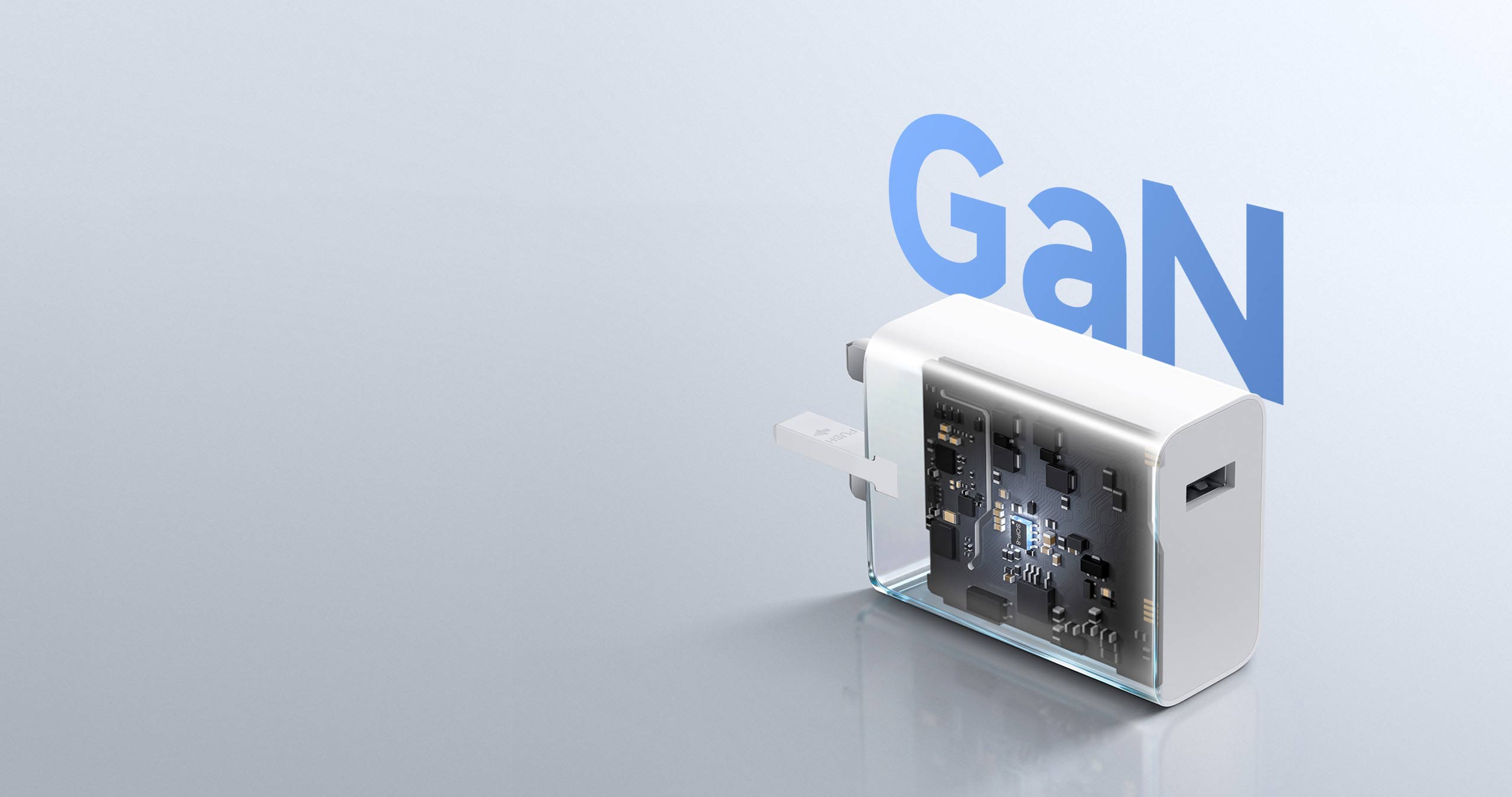 GaN 快速充電技術採用第三代半導體物料,具備高導熱性及耐熱性,讓充電器在保持輕巧便攜的同時,提升功率轉換效率,出行時更節省空間。