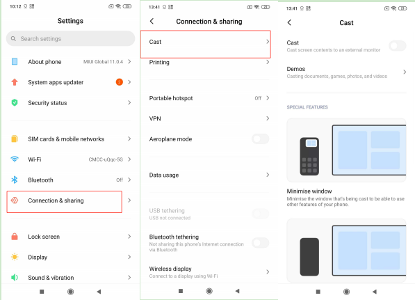 具體設置方法:設置>>連接和共用>>投射。