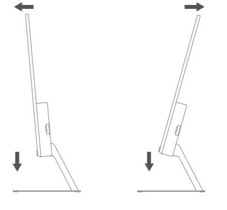 請注意: 調整前傾或後傾角度時,建議一隻手握住支架,另一隻手調整顯示器。如果用一隻手調整顯示器,顯示器很容易翻倒。
