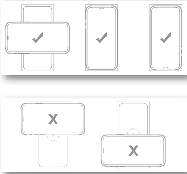 A:無線充電時,請將手機中心對準無線充電面板中心進行無線充電。如果不能正常工作,請調整手機位置,直到顯示正常充電(位置請參考下圖)