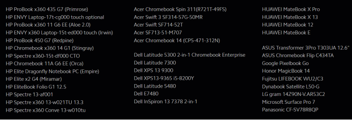 答:測試列表取決於筆記本電腦型號和軟件版本。筆記本電腦上的軟件升級可能會影響兼容性。此處列出的筆記本電腦型號只是所有支持型號的一個子集。