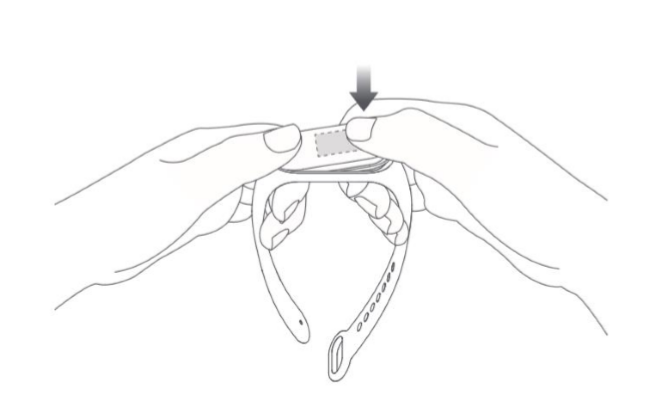 取下腕帶,用力拉腕帶兩端,使跟蹤器單元與腕帶插槽之間留出一個小間隙,然後用手指從腕帶正面取下單元。