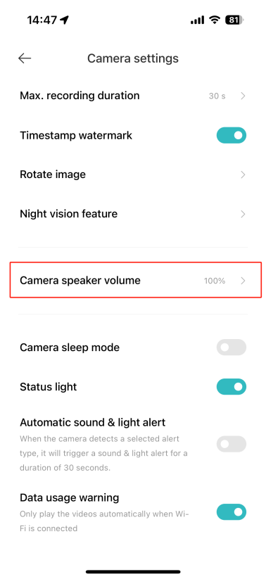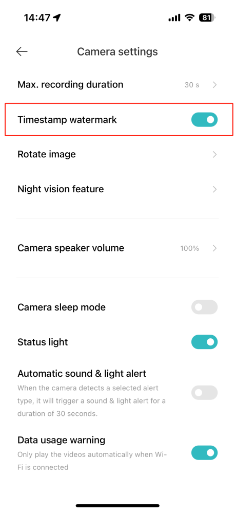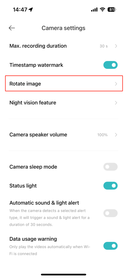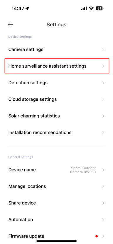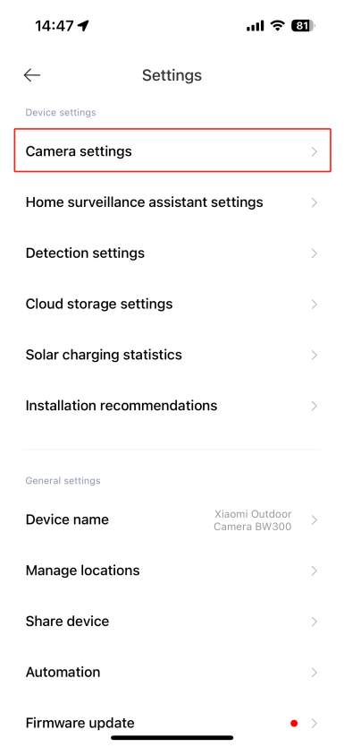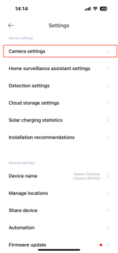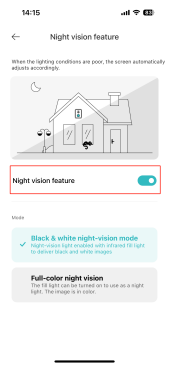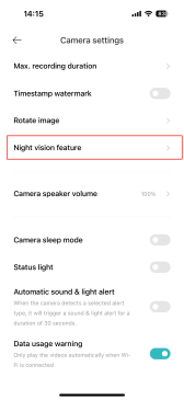 打開[Mi Home] APP>>[設備卡]>>點擊右上角的三點圖示>>[相機設置]>>向下滾動並選擇[夜視設置]>>選擇[打開]將其打開。