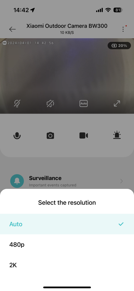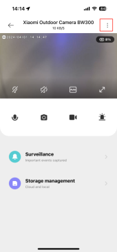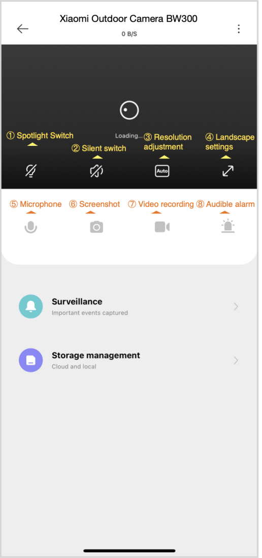 2.問:小米戶外攝像機BW300實時監控介面上的按鈕有什麼功能?