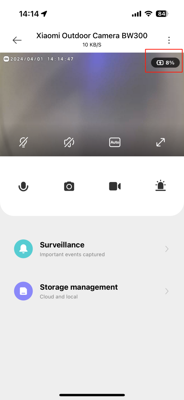 A:打開 【米家】APP >> 【設備卡】 >>點擊右上角【回車】切換到攝像頭直播。螢幕右上角將顯示太陽能電池板的充電狀態和功率。