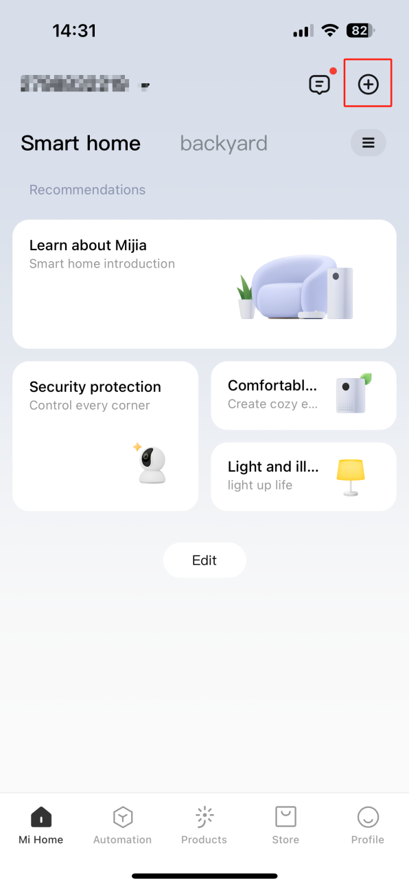 進入【米家】APP,>>點擊右上角的[+]圖示>>點擊【添加設備】 >> 如果找不到附近的設備,請選擇右上角的[掃描]按鈕 >>按照提示操作>>等待一段時間,直到連接過程完成。