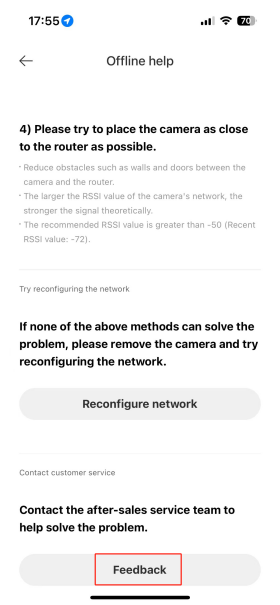 2.確保攝像機與室內機之間的信號強度強。另外,檢查Wi-Fi信號;