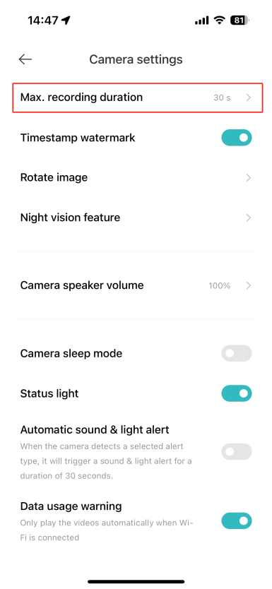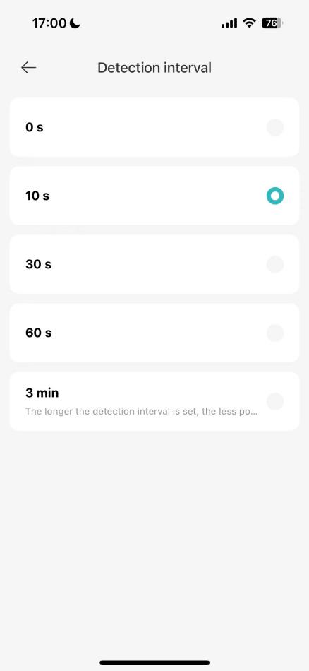 同時,攝像機會在錄製一段時間后檢測到報警視頻。為了降低視頻推送的頻率(防止干擾),還可以選擇不同的間隔時間。主要是因為相機使用鋰電池作為能量供應,希望一次充電后可以使用更長的時間,也可以滿足設置間隔時間之前的基本安全需求。