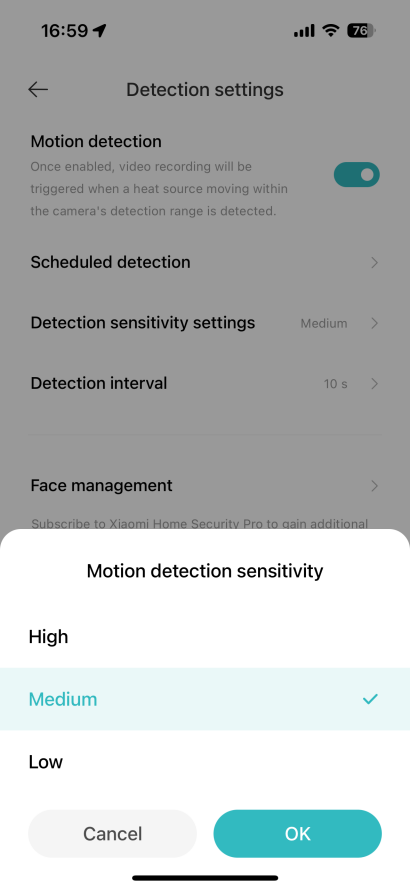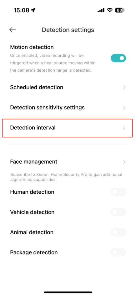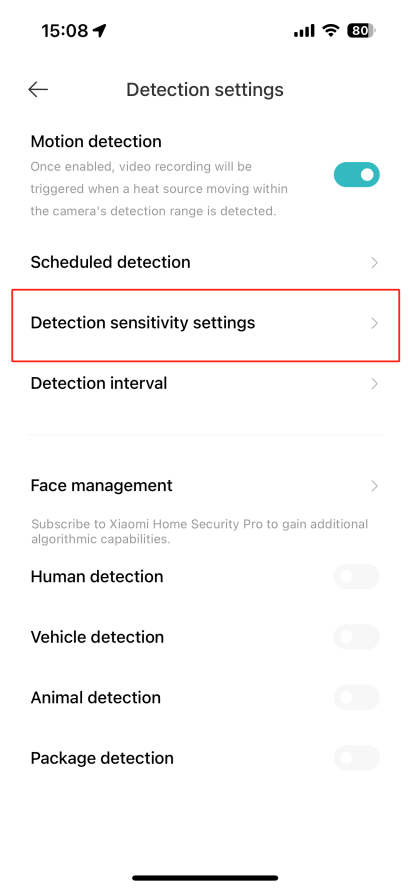 答:可能是由於相機檢測設置中的靈敏度低引起的,並自定義米家應用程式中的設置以調整靈敏度。