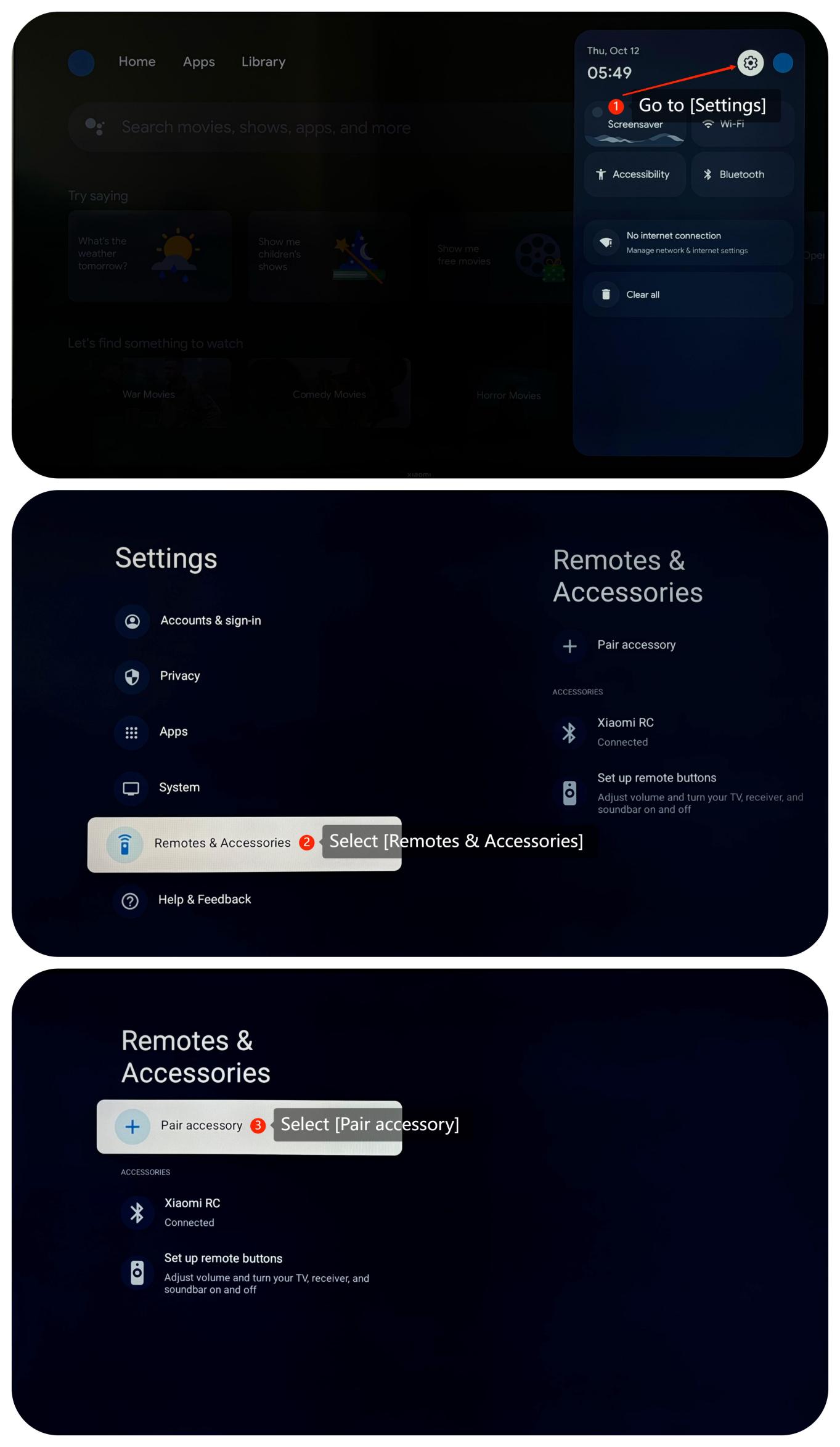 2. 嘗試將藍牙設備移近小米電視盒 S(第 2 代)以進行藍牙連接;