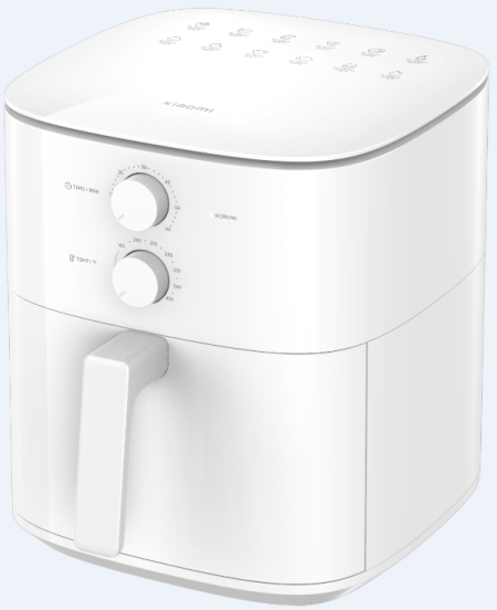 A: Xiaomi智慧氣炸鍋6L採用光波管與單速風扇,實現360°熱風循環加熱。