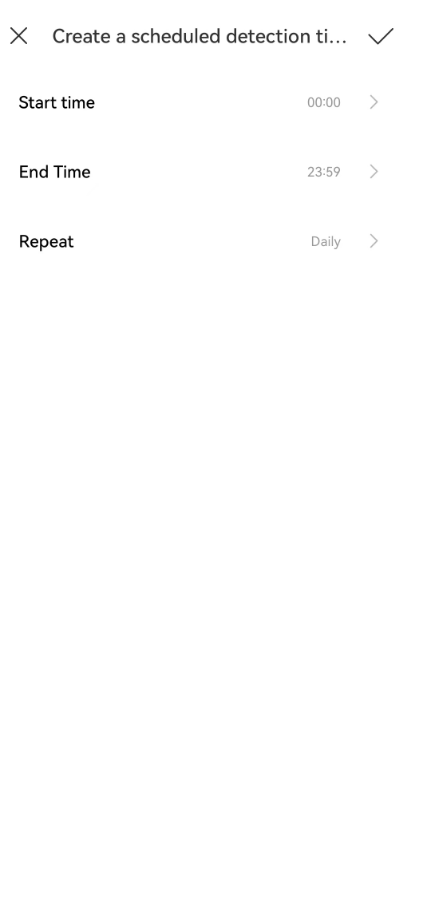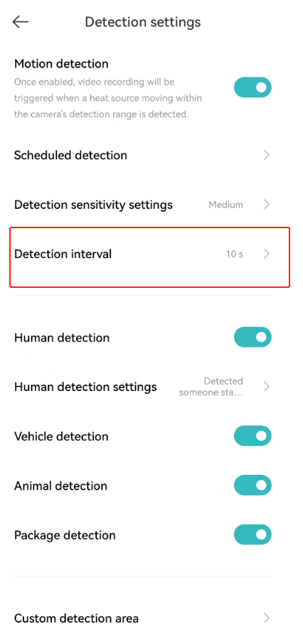 小米戶外攝像機BW500綁定小米家庭APP后,可以調整運動檢測的定時檢測、檢測靈敏度設置和檢測間隔。