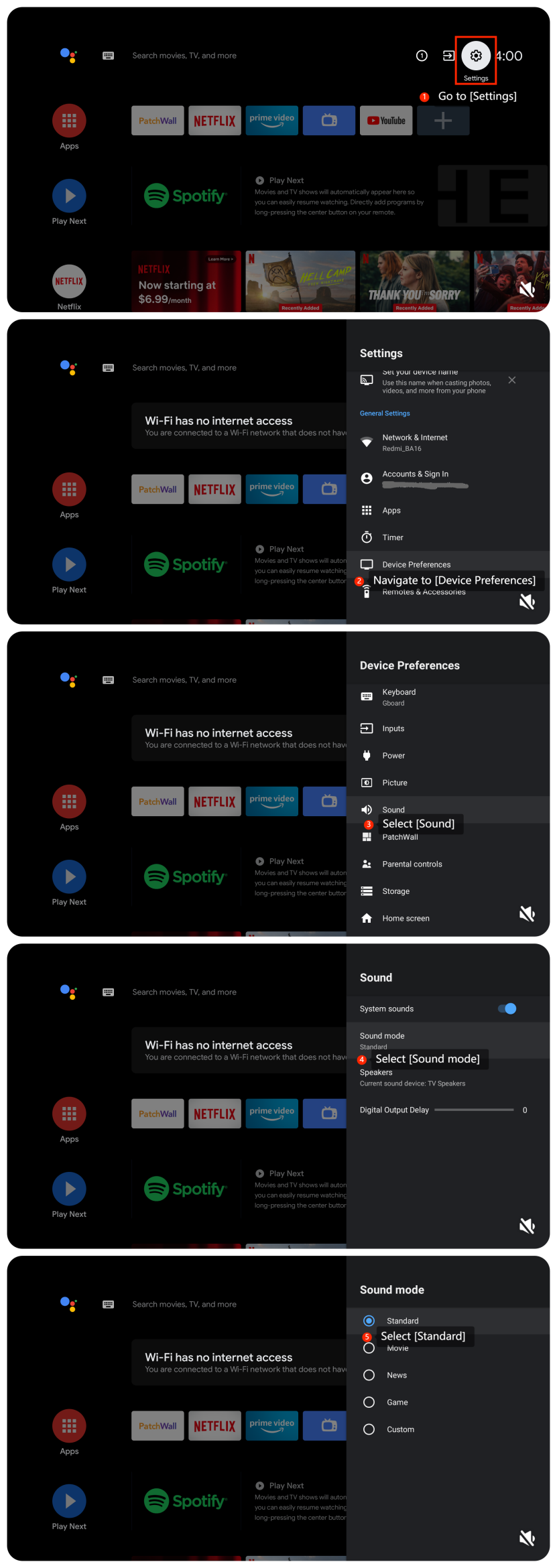 如果您在 Mi TV 4S 50 上遇到異常的低音效果,請參閱以下故障排除步驟:
