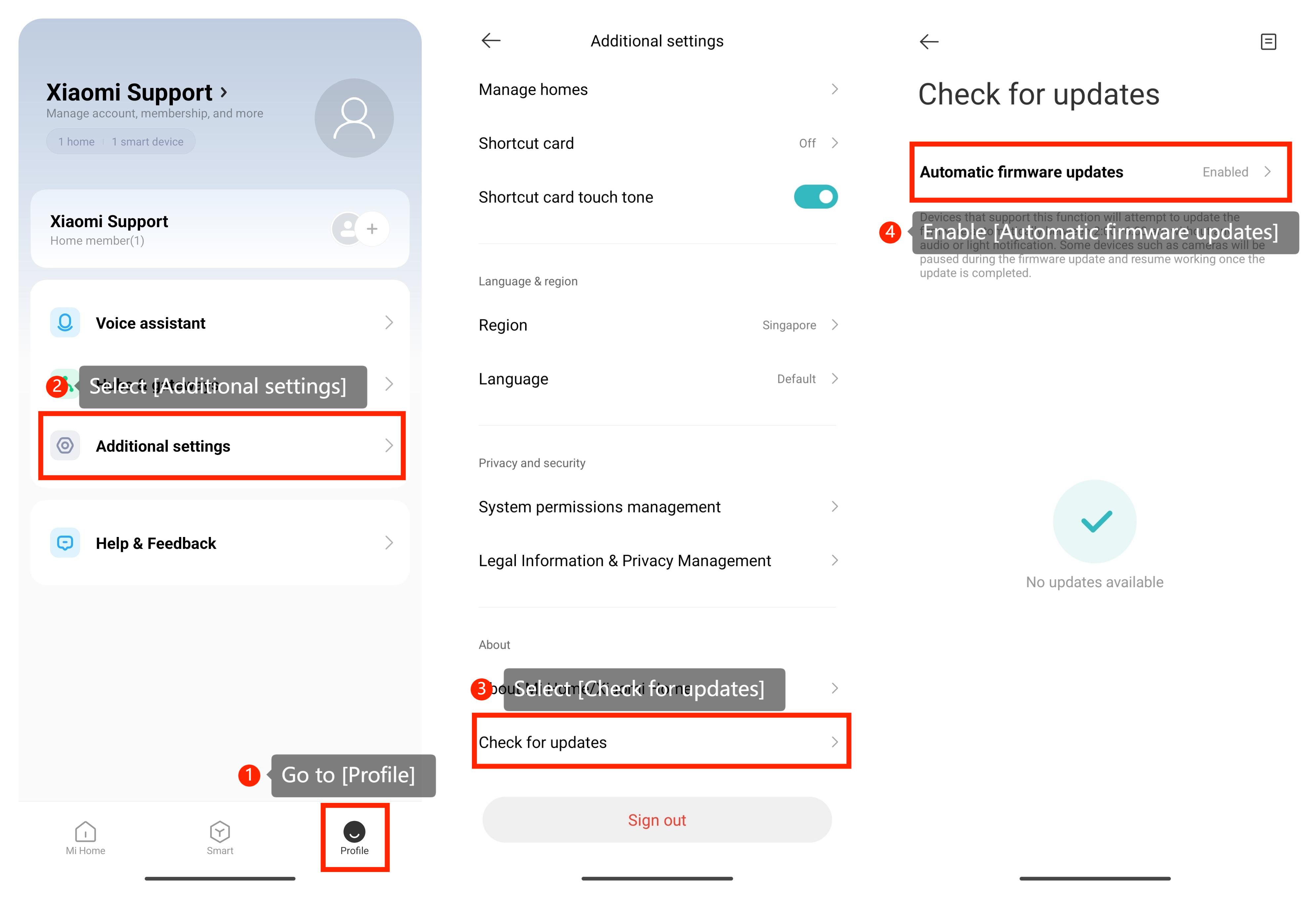 [配置檔] >> [其他設置] >> [檢查更新] >> [自動固件更新]