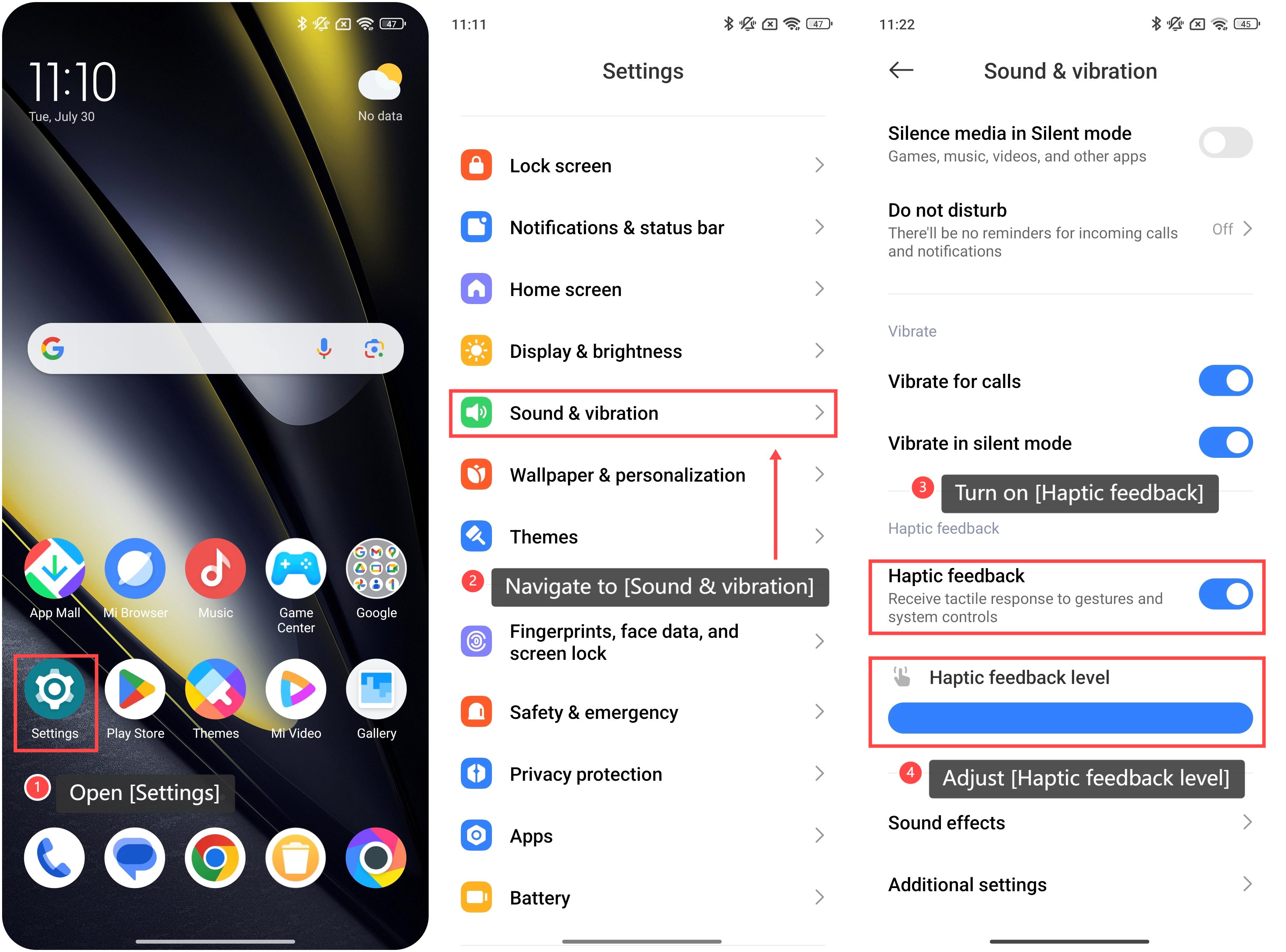 要打開和調整觸覺反饋級別,請參考以下步驟: