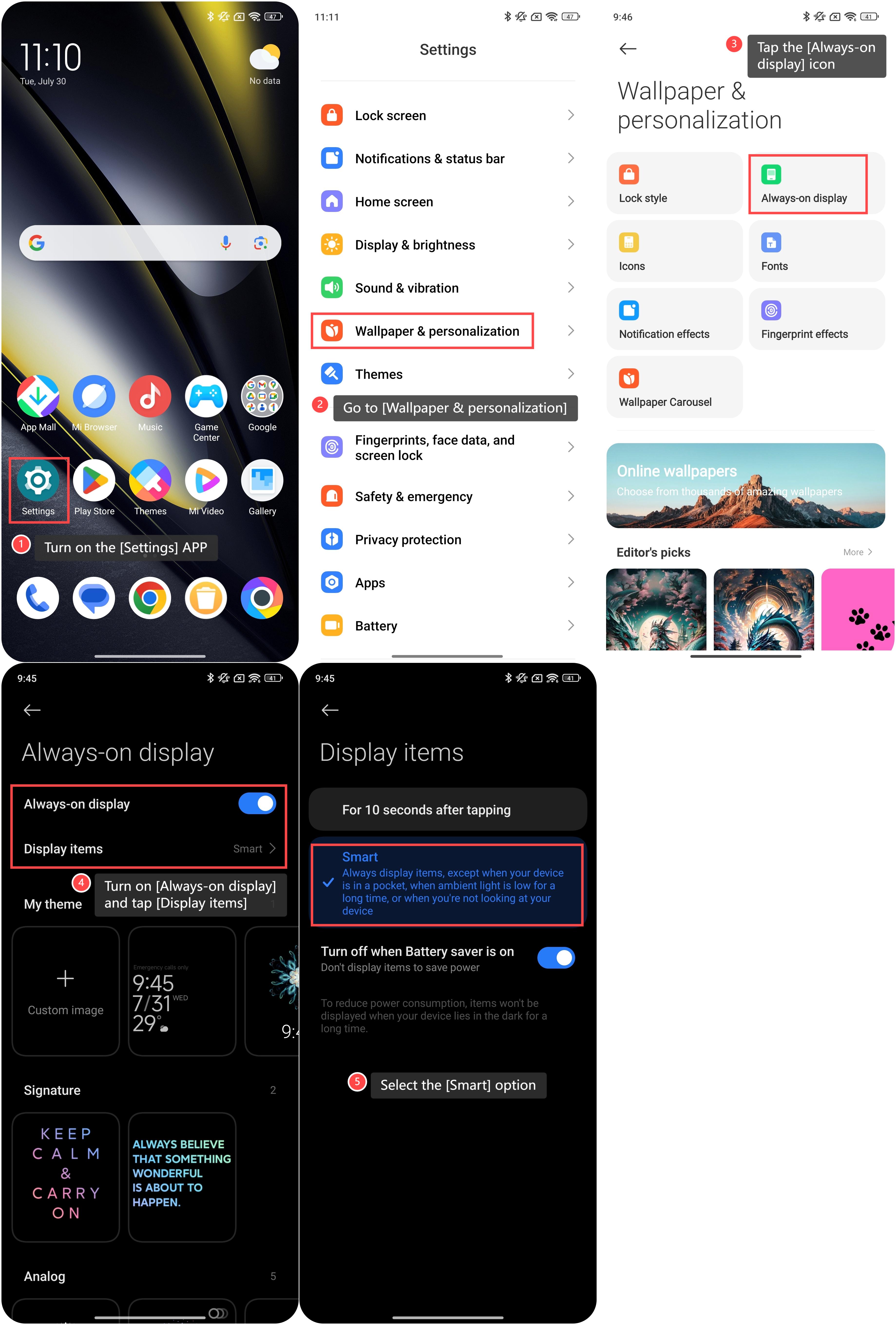要在手機上開啟智慧AOD,請參考以下步驟: