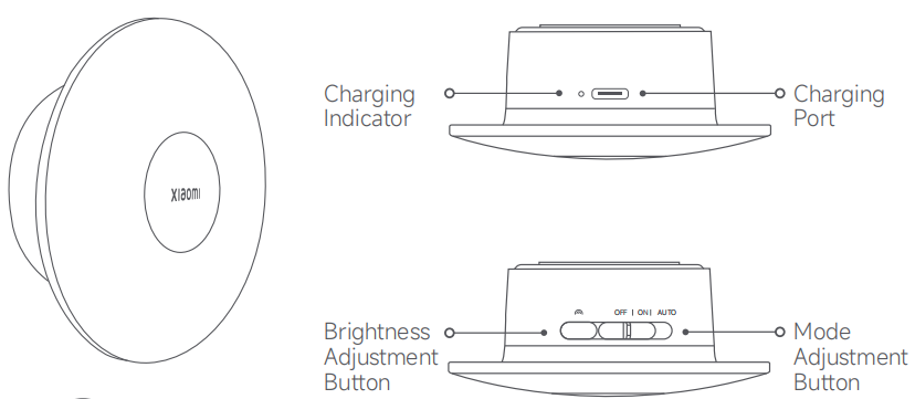 小米夜燈 3 按鈕的名稱和插圖如下所示: