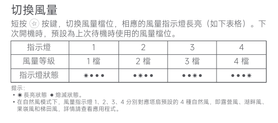 3. Q:Xiaomi 直流變頻塔扇 2如何切換風量檔位?