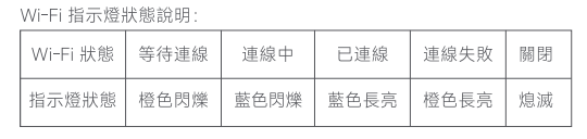 Wi-Fi指示燈狀態說明: