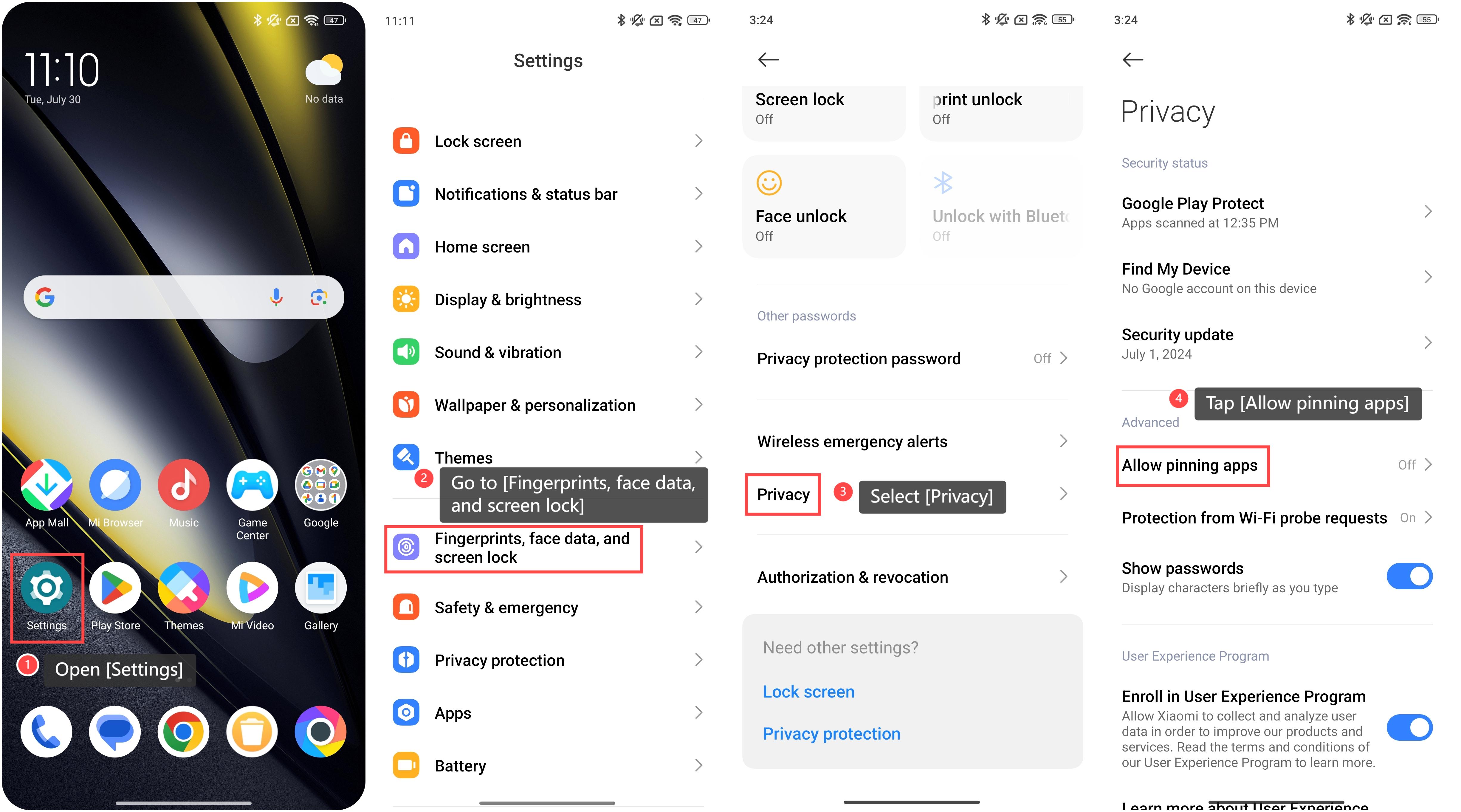 將APP固定在 POCO F6 Pro 上,是指將特定的APP保留在手機介面上。當APP被固定時,您只能使用此APP操作手機,不能退出、切換到其他APP或返回主螢幕。