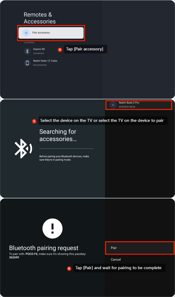 5. 在電視上選擇設備或在設備上選擇要配對的電視;