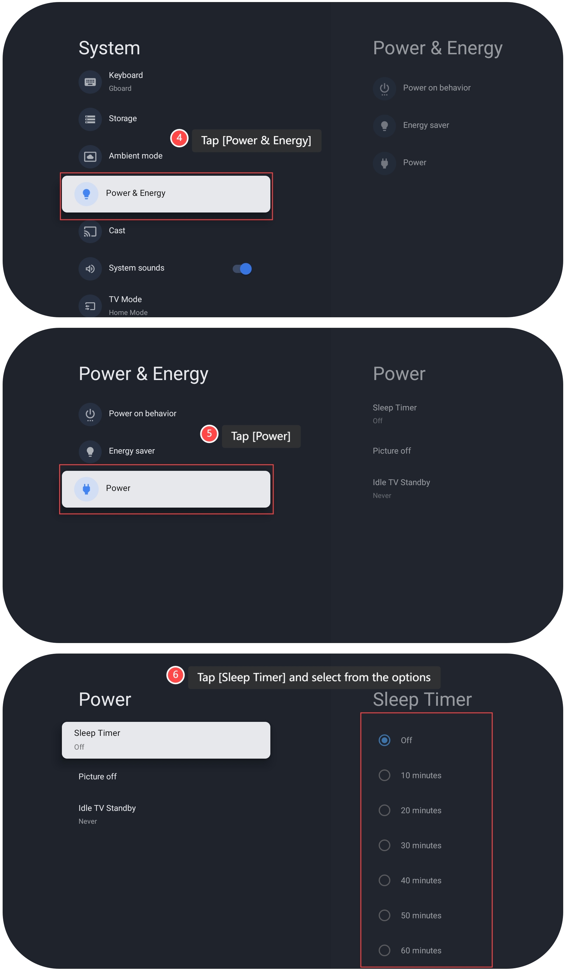 Sleep 模式來降低功耗,而不是關閉電視。這樣,您可以在返回后快速打開電視。