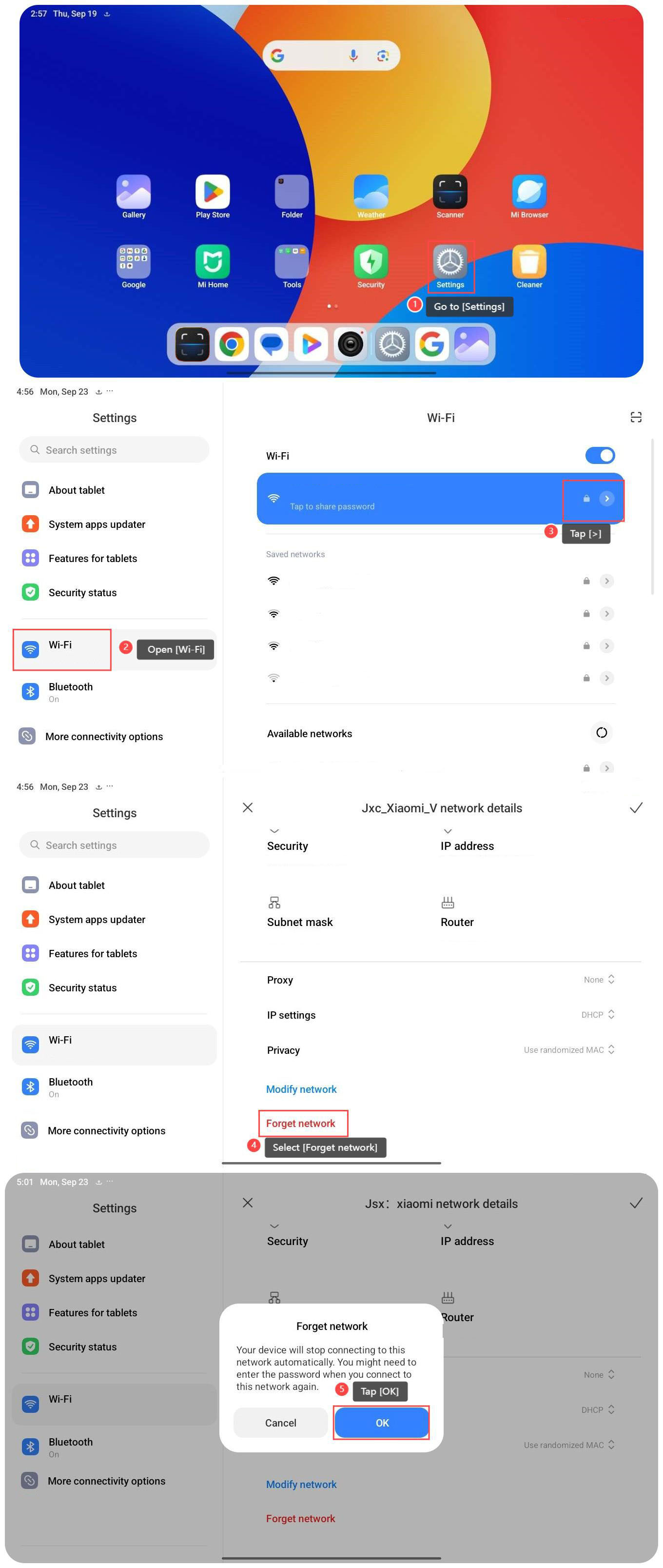 如何忘記 Redmi Pad SE 8.7 上的Wi-Fi網路?
